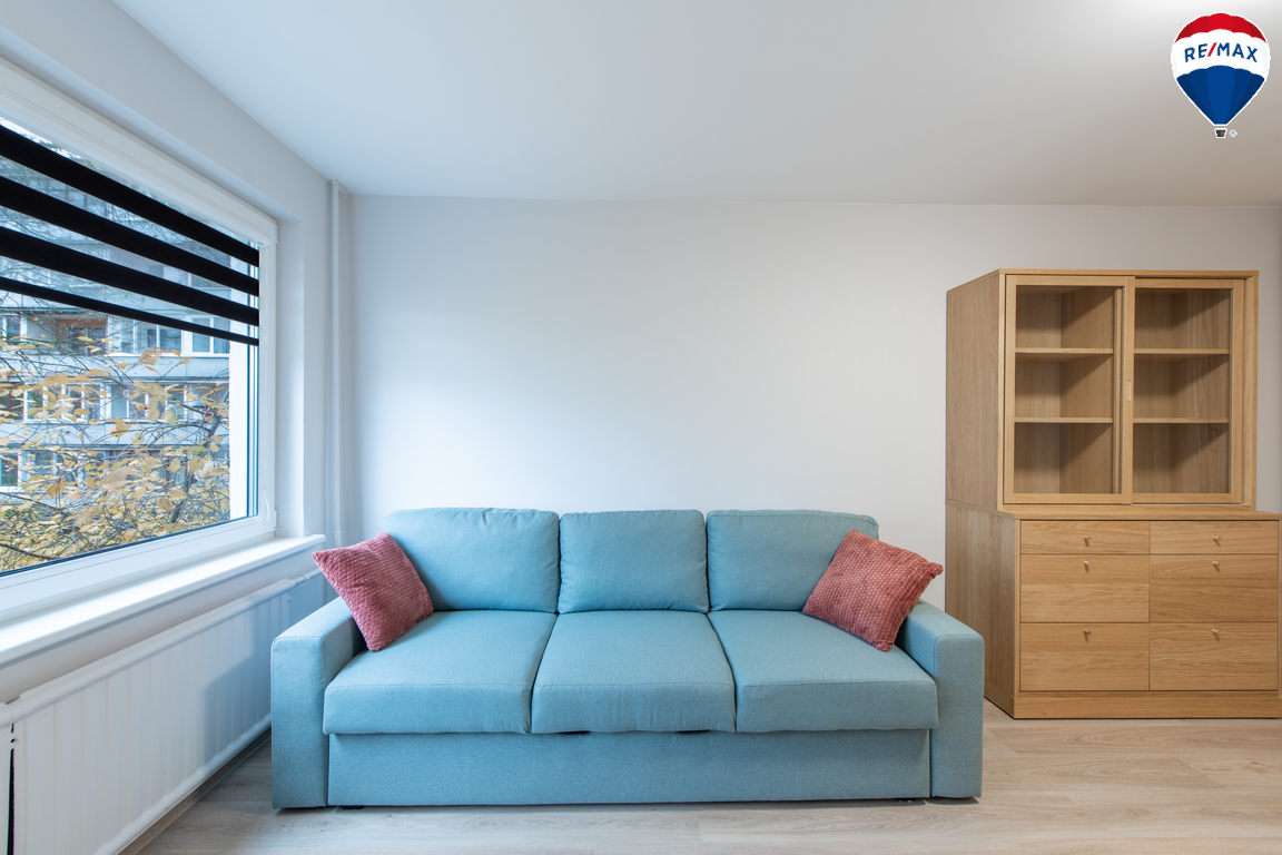 - Butas nuomojamas su visais jame esančiais baldais (virtuvinių baldų komplektas, valgomojo stalas su kėdėmis, sofa-lova, lauko drabužių spinta prieškambaryje, spinta ir sekcija kambaryje, rašomasis stalelis) ir buitine technika (skalbimo mašina, dujinė viryklė su orkaite, gartraukis, šaldytuvas);