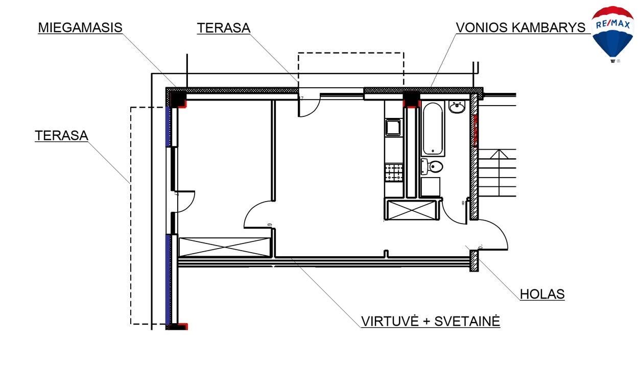 - Plotas – 45,30 kv.m;