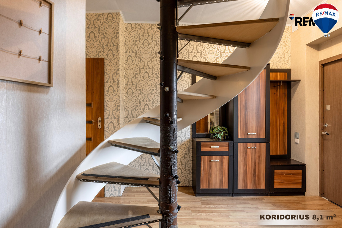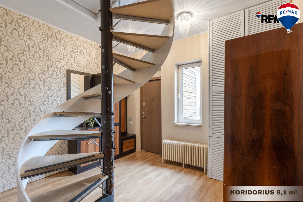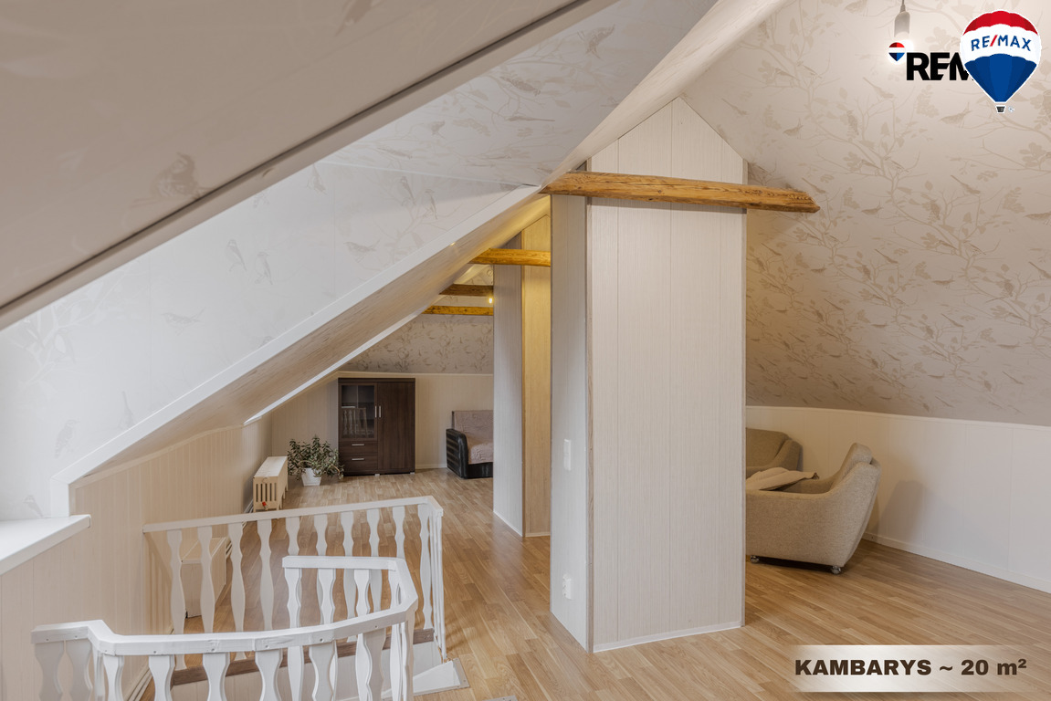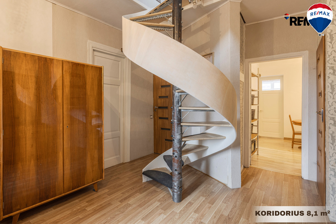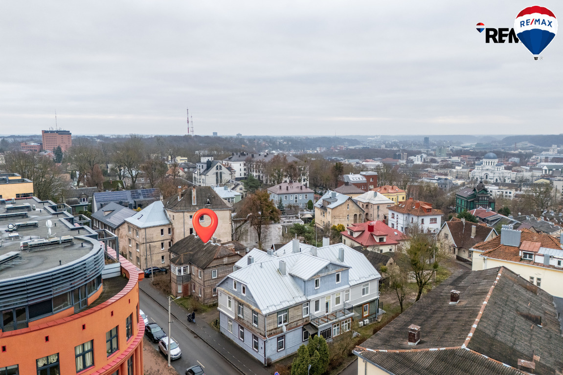 Butas erdvus, šviesus ir jaukus, turintis savo istoriją ir išskirtinių subtilių detalių – erkerio tipo veranda, spiraliniai laiptai, išskirtinio dizaino radiatoriai, bei iš mansardos atsiveriantis išskirtinis vaizdas į Kauno centro panoramą;