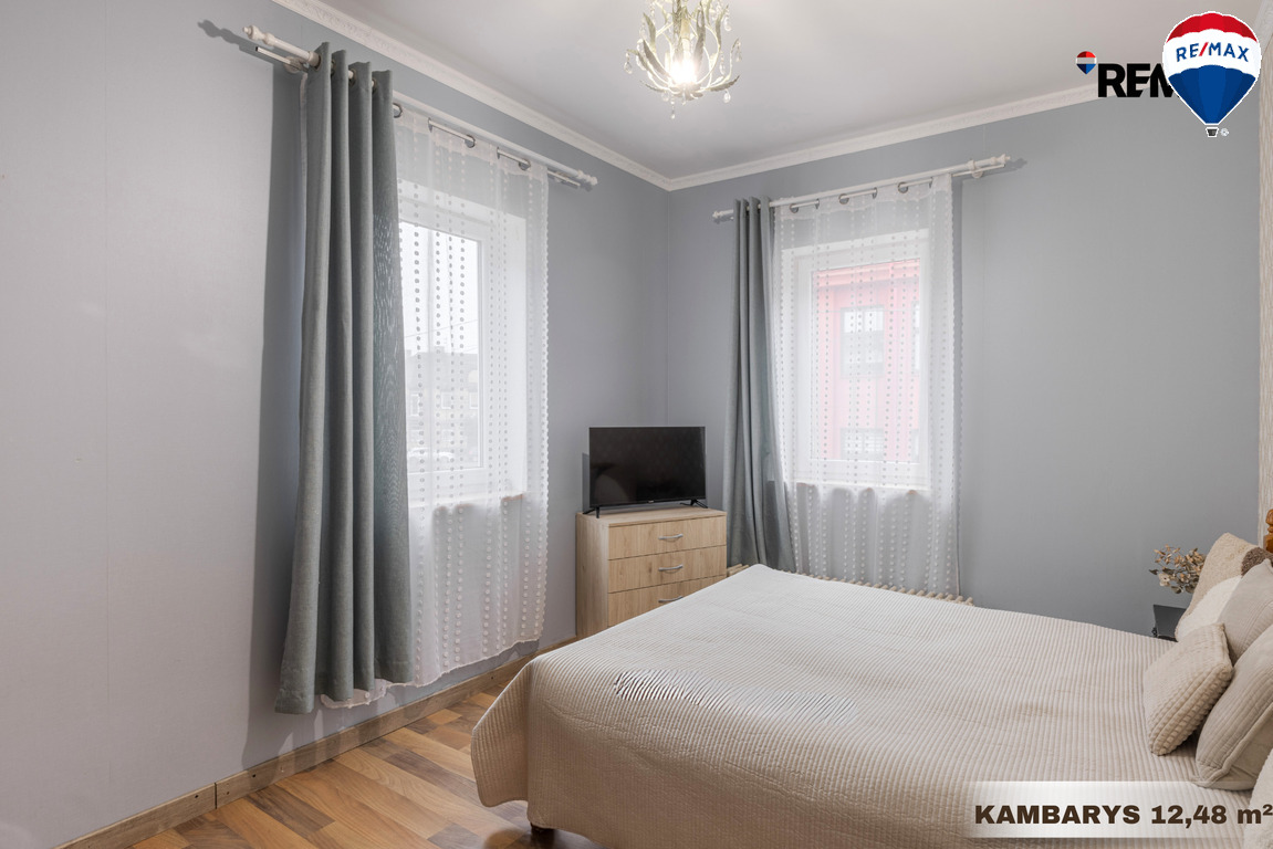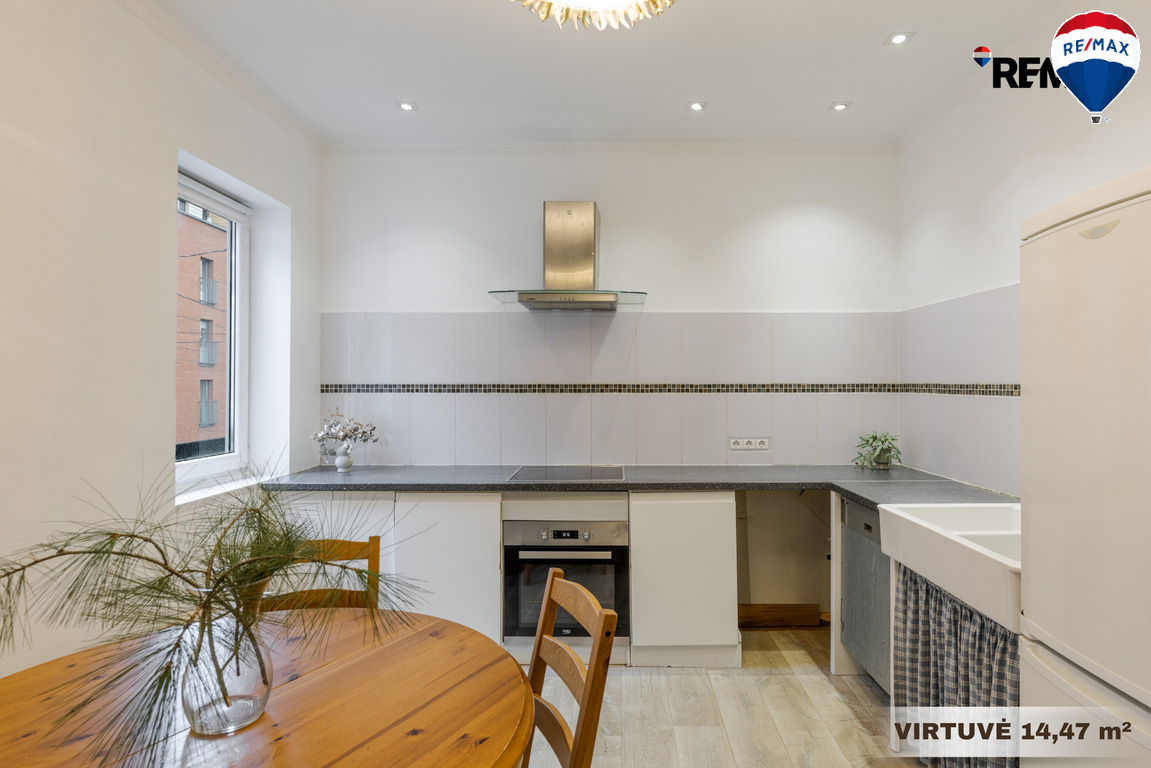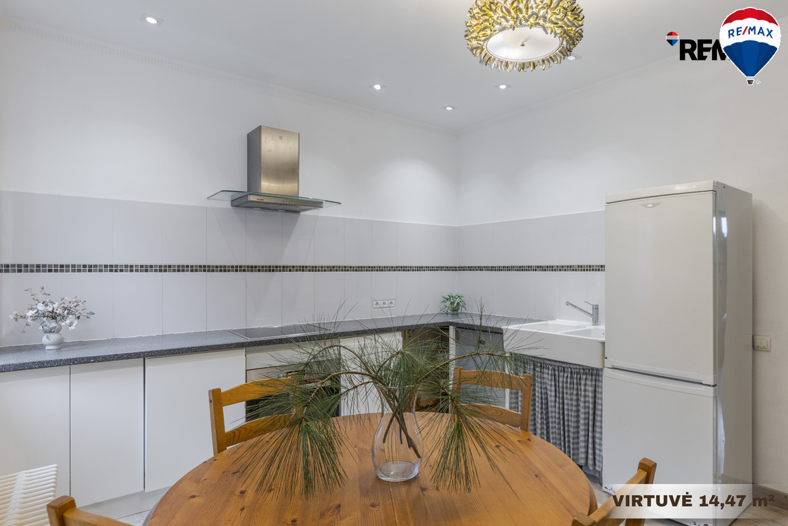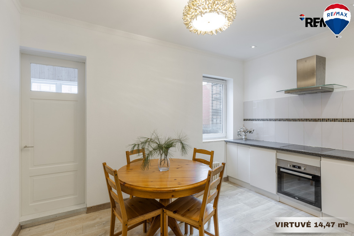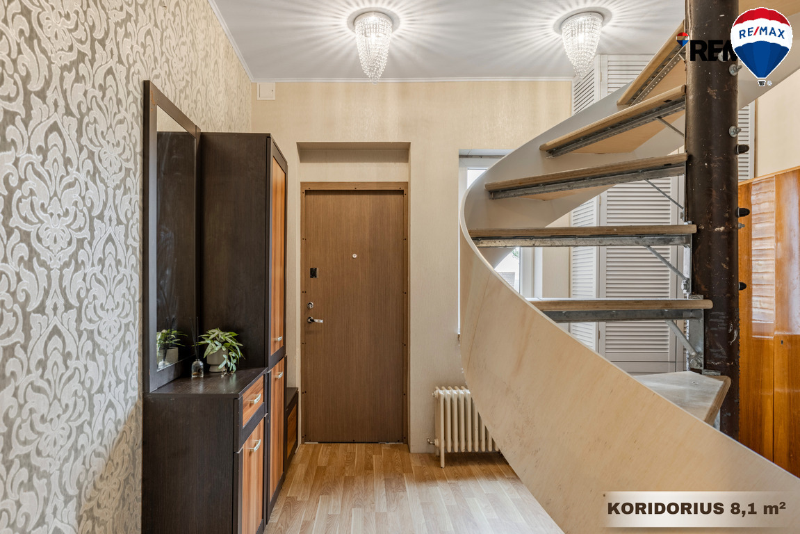 Butas erdvus, šviesus ir jaukus, turintis savo istoriją ir išskirtinių subtilių detalių – erkerio tipo veranda, spiraliniai laiptai, išskirtinio dizaino radiatoriai, bei iš mansardos atsiveriantis išskirtinis vaizdas į Kauno centro panoramą;