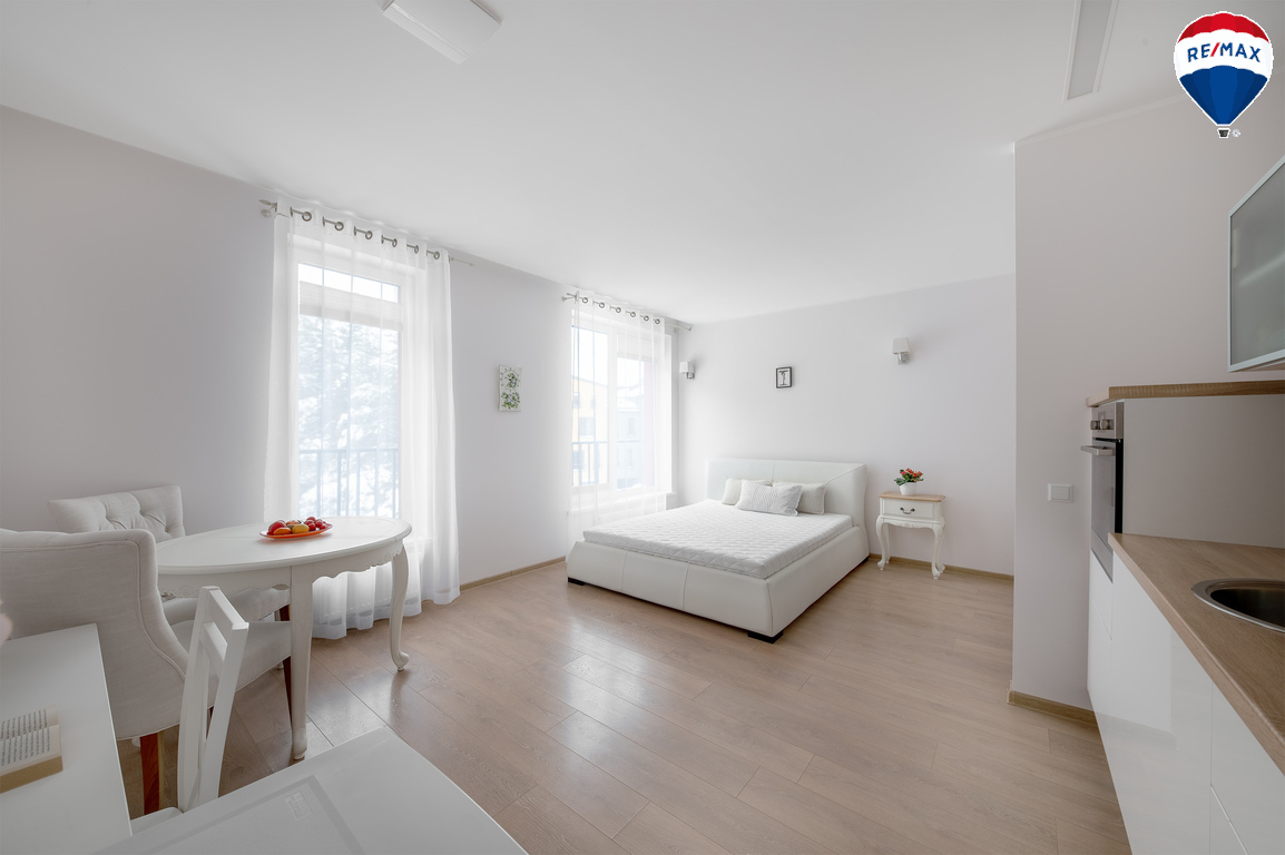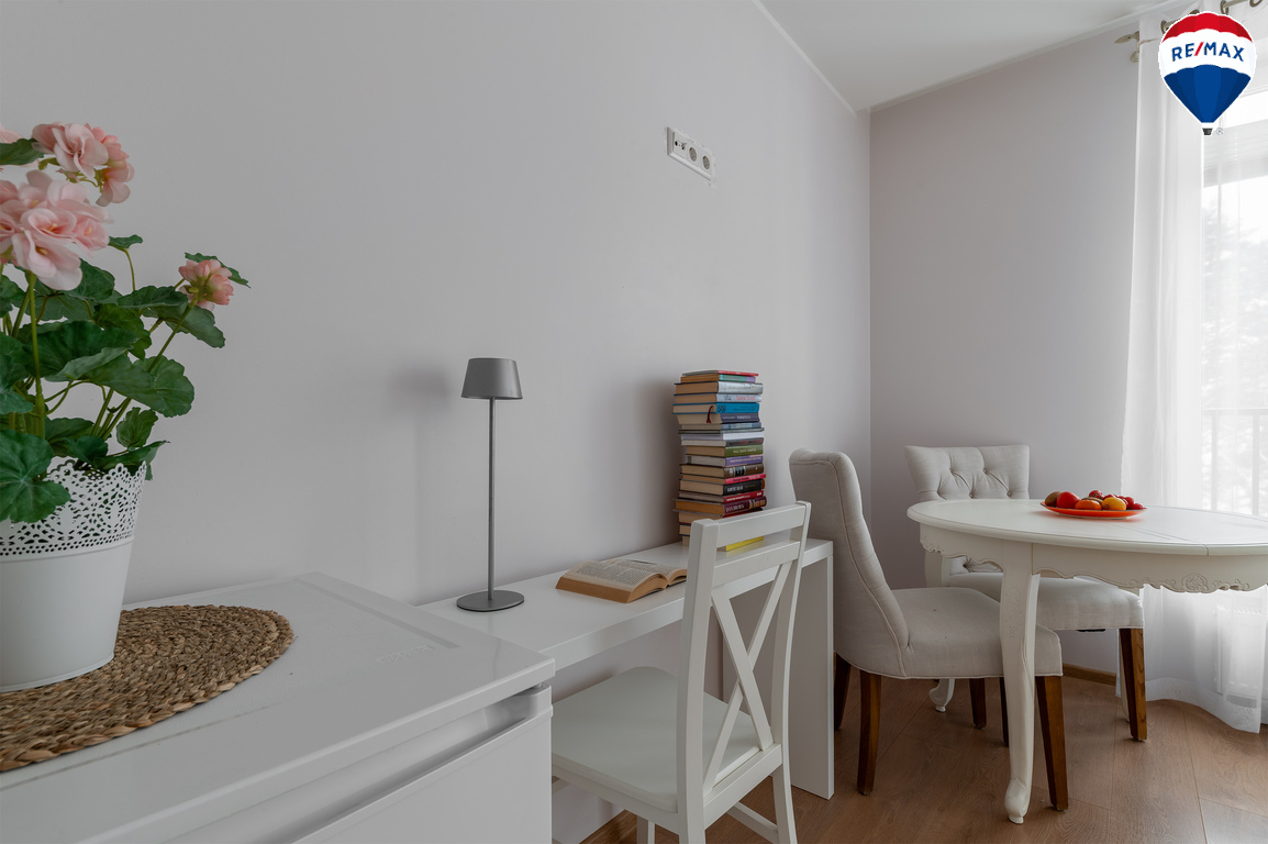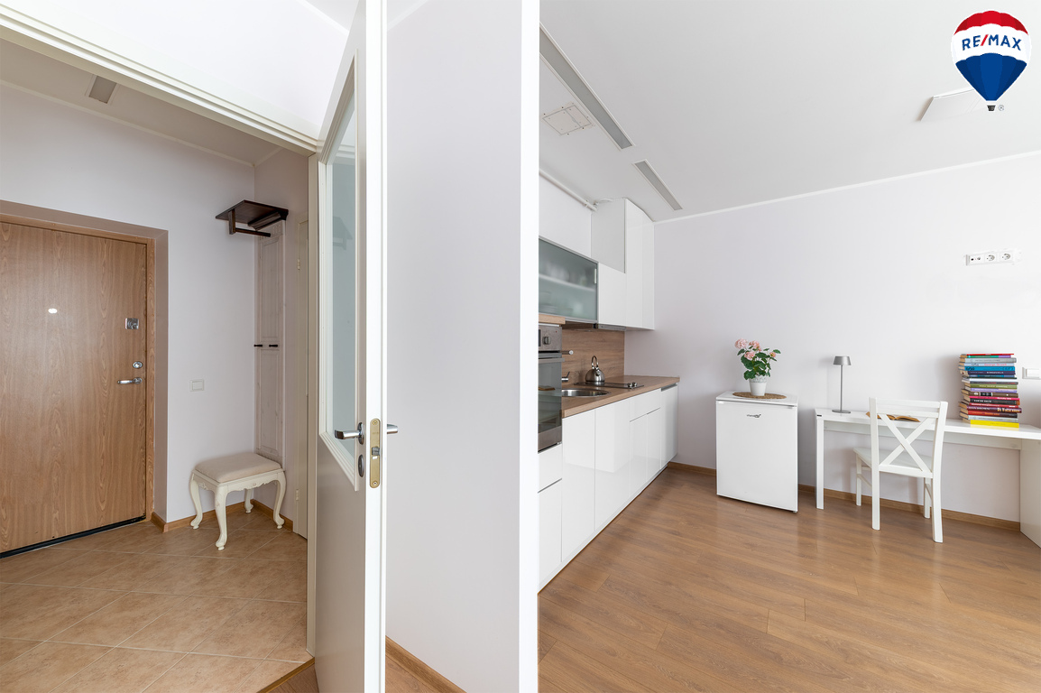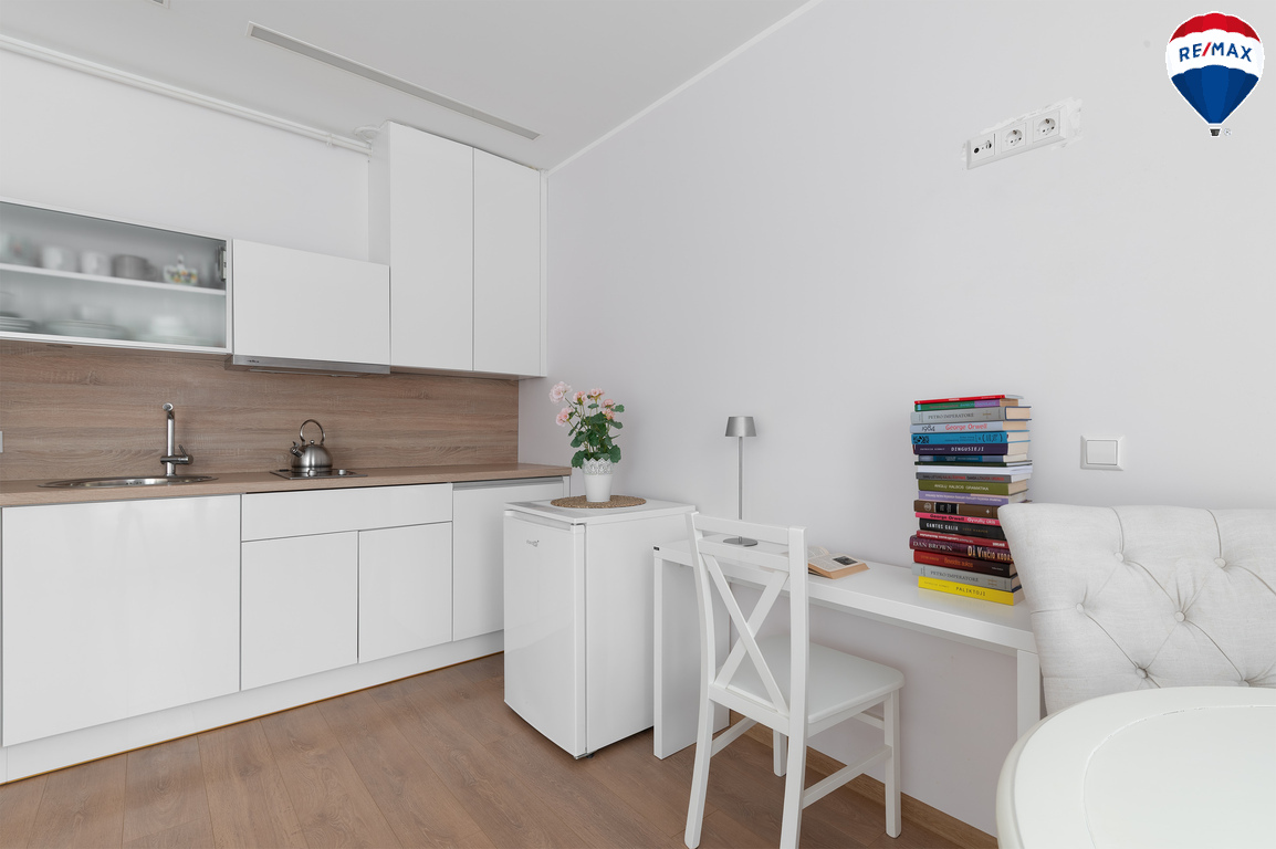 --Šviesi, racionaliai suplanuota erdvė su integruota virtuve.