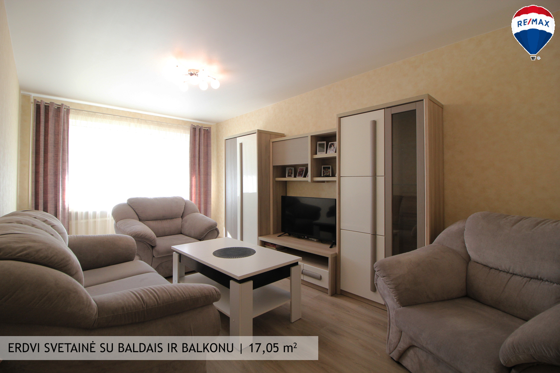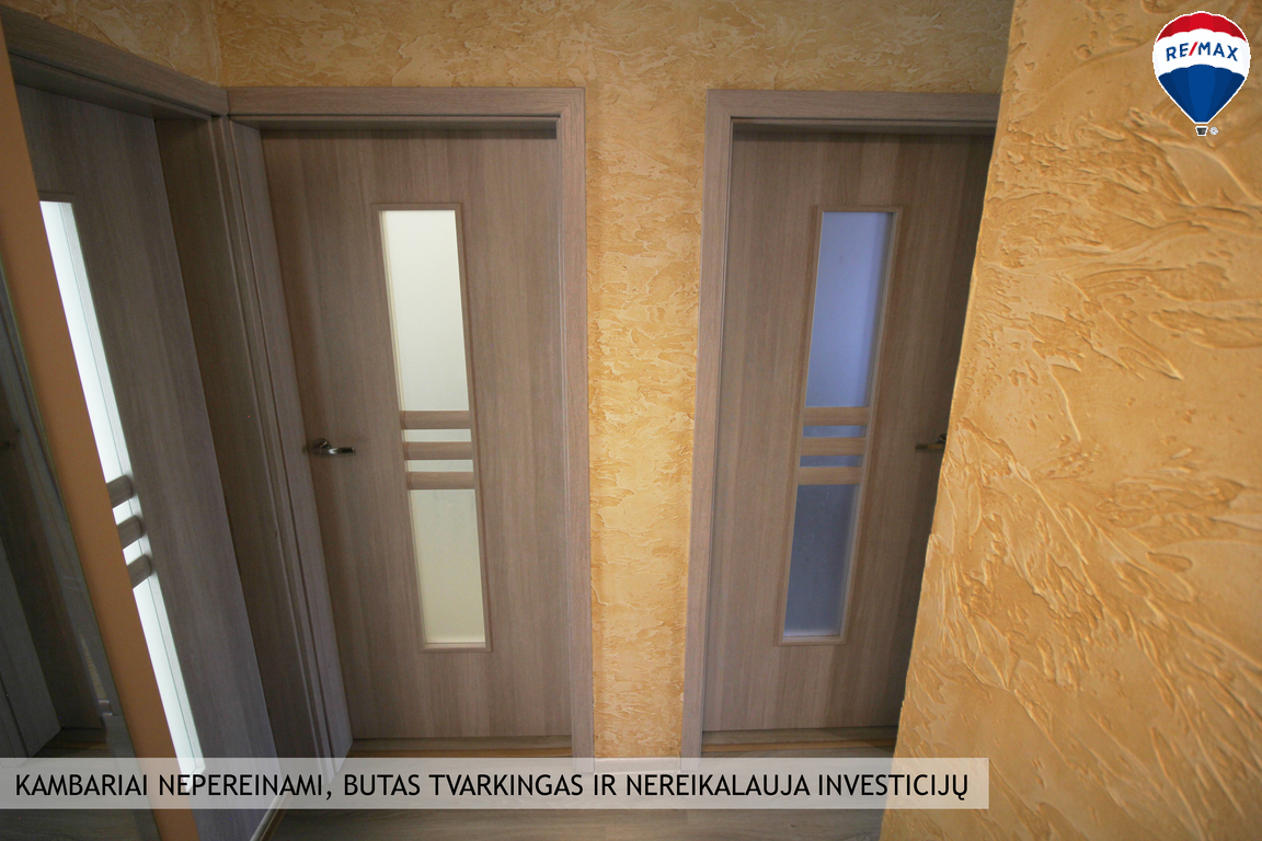 Būstas pilnai įrengtas, parduodamas su baldais, yra virtuvė su virtuviniais baldais bei buitine technika. Sumontuoti plastikiniai langai su stiklo paketais, šarvo durys, atnaujinta elektros instaliacija, pakeisti vamzdynai. Butui priklauso balkonas ir rūsys. Laiptinė rakinama, todėl jausitės saugiau ir patogiau.