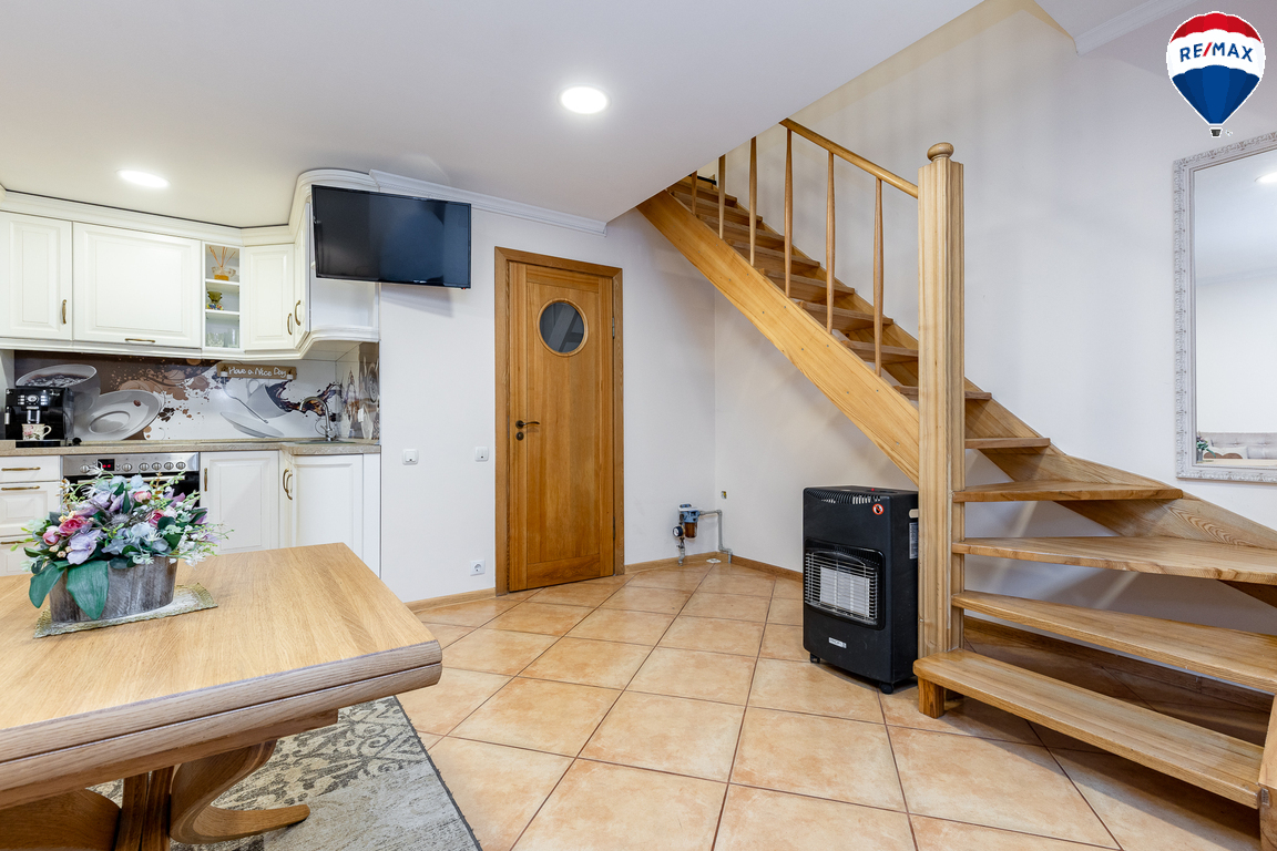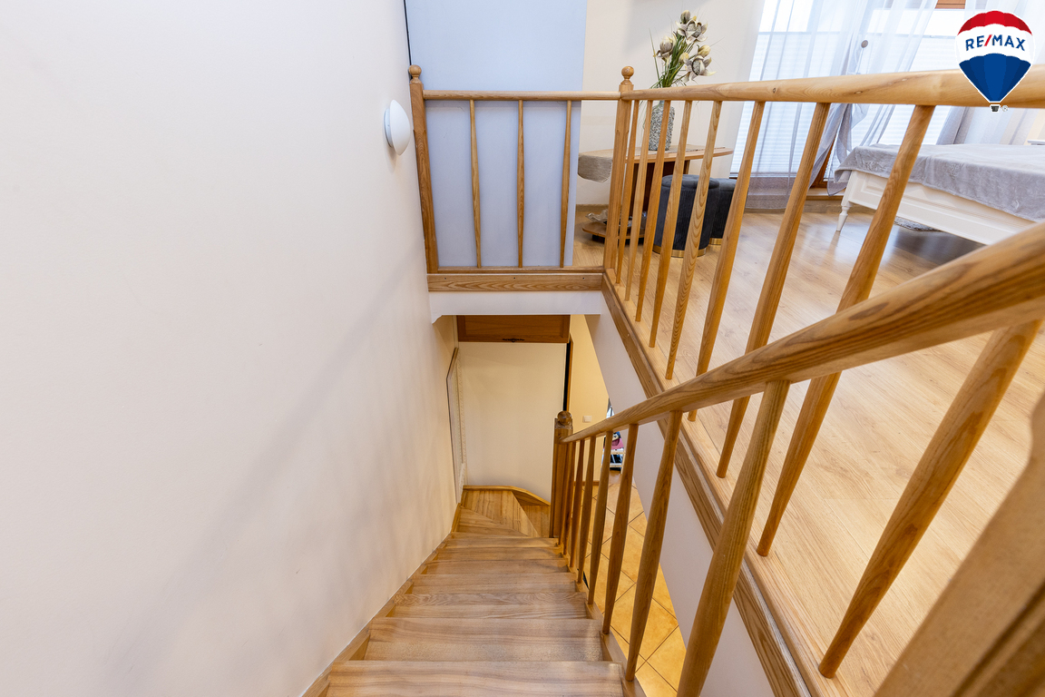 • Grindys – 1-ame aukšte - plytelės, antrame - natūralus medis.