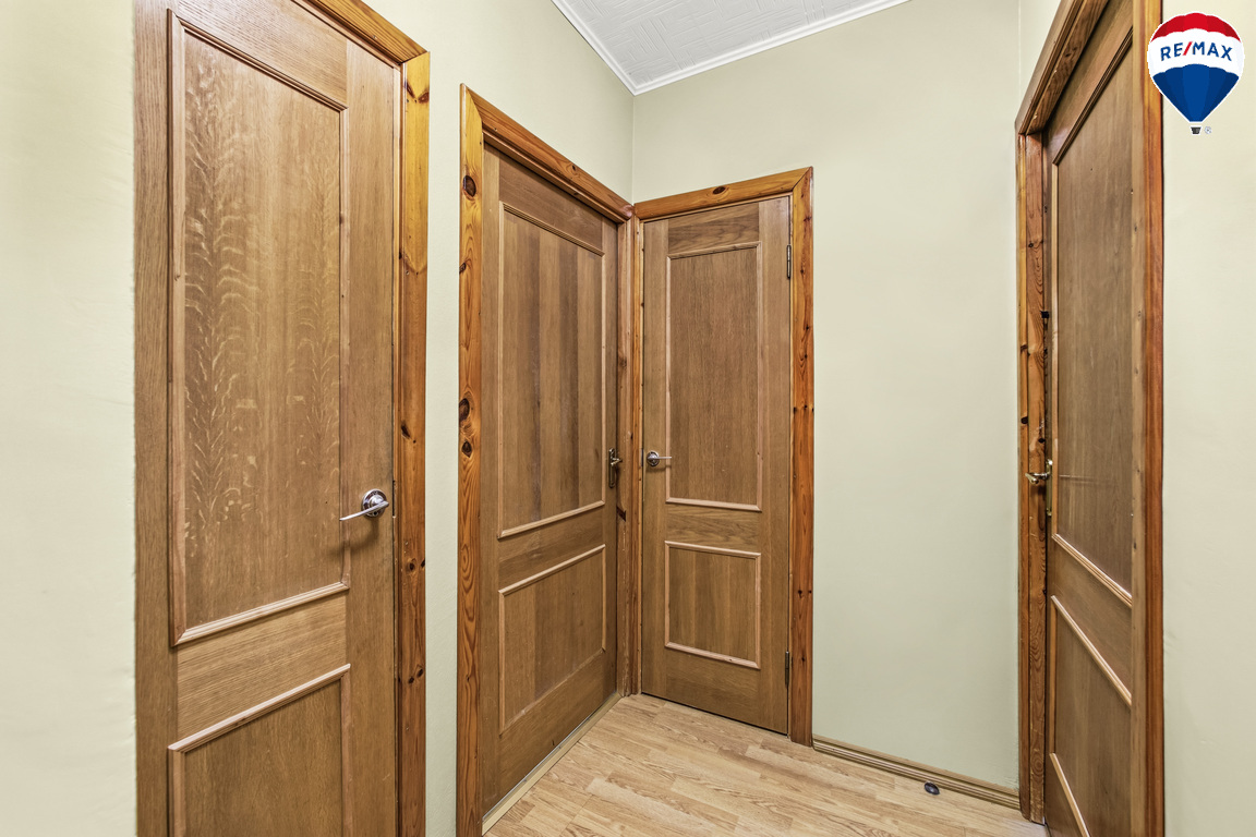 - Grindys – laminatas; vonios kambaryje, tualete ir virtuvėje – plytelės;