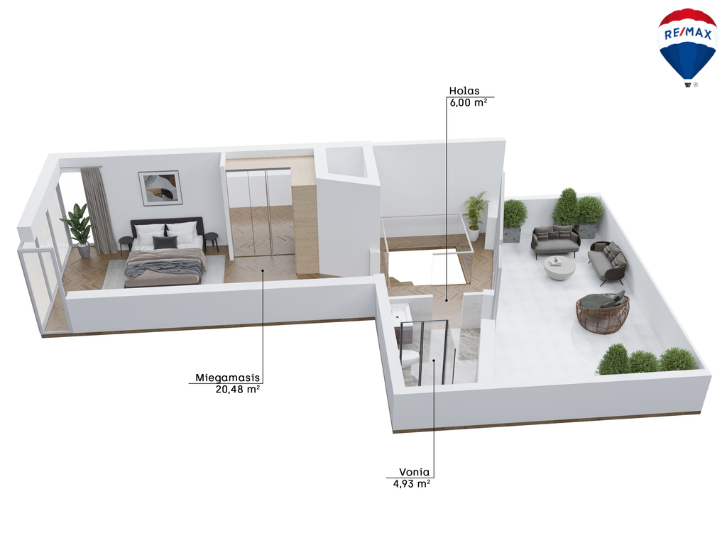 – Privati terasa antrame aukšte – unikali erdvė su vaizdu į pušyną ir dangų;