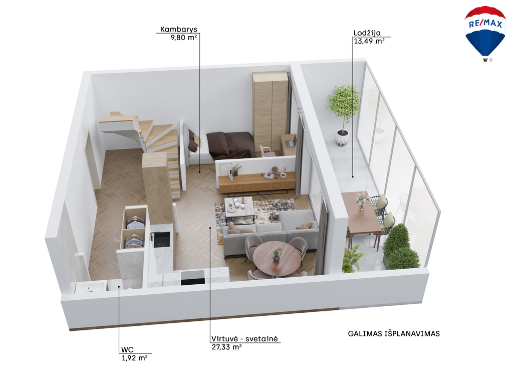 – Įstiklinta lodžija su stiklinėmis lubomis – poilsiui, vakarienėms ar ramiems rytams gamtos apsuptyje;