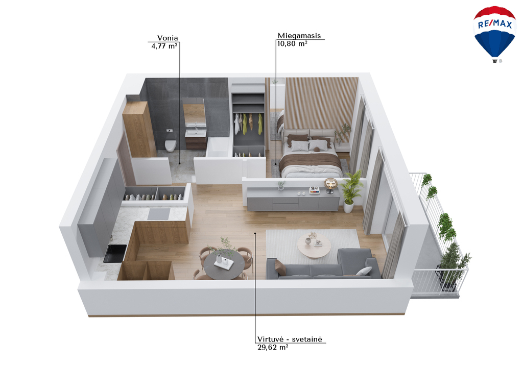 - Svetainė sujungta su virtuve;