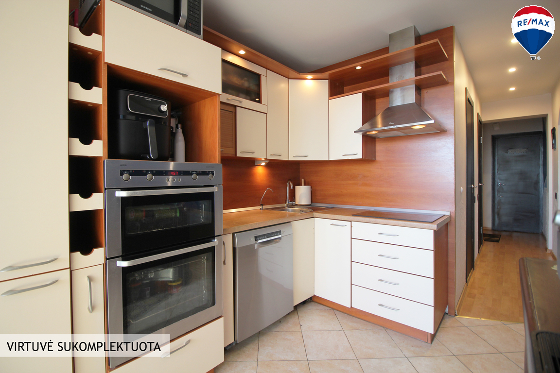 Bute yra įmontuoti kokybiški plastikiniai langai su stiklo paketais, sumontuotos šarvuotos durys. Virtuvėje baldų komplektas su buitine technika. Yra indaplovė, skalbimo mašina, indukcinė kaitlentė. Taip pat vonioje įrengtos šildomos grindys ir šiuolaikinis dušas. Bute nauja elektros instaliacija bei santechnika, tad jokių papildomų investicijų nereikės – galima kraustytis iš karto!
