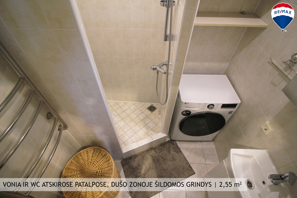 Puikus privalumas – centralizuotas šildymas, o dušo zonoje bei virtuvėje balkono dalyje įrangtas elektrinis grindinis šildymas.