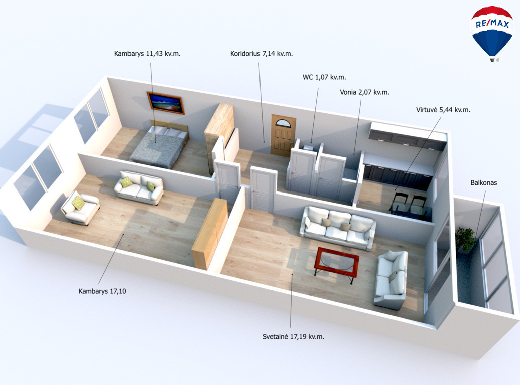 | Kambarių sk. 3 | Statybos metai 1967 m. | Plotas 61.44 m² | Aukštas 2/5 |