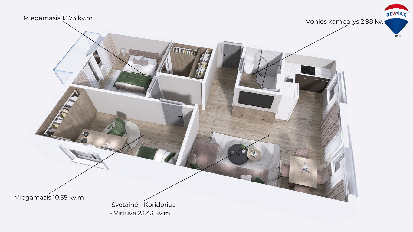 📸 Skelbime pateikiama vizualizacija, atspindinti, kaip butas atrodys po remonto.