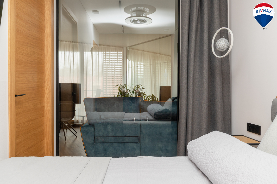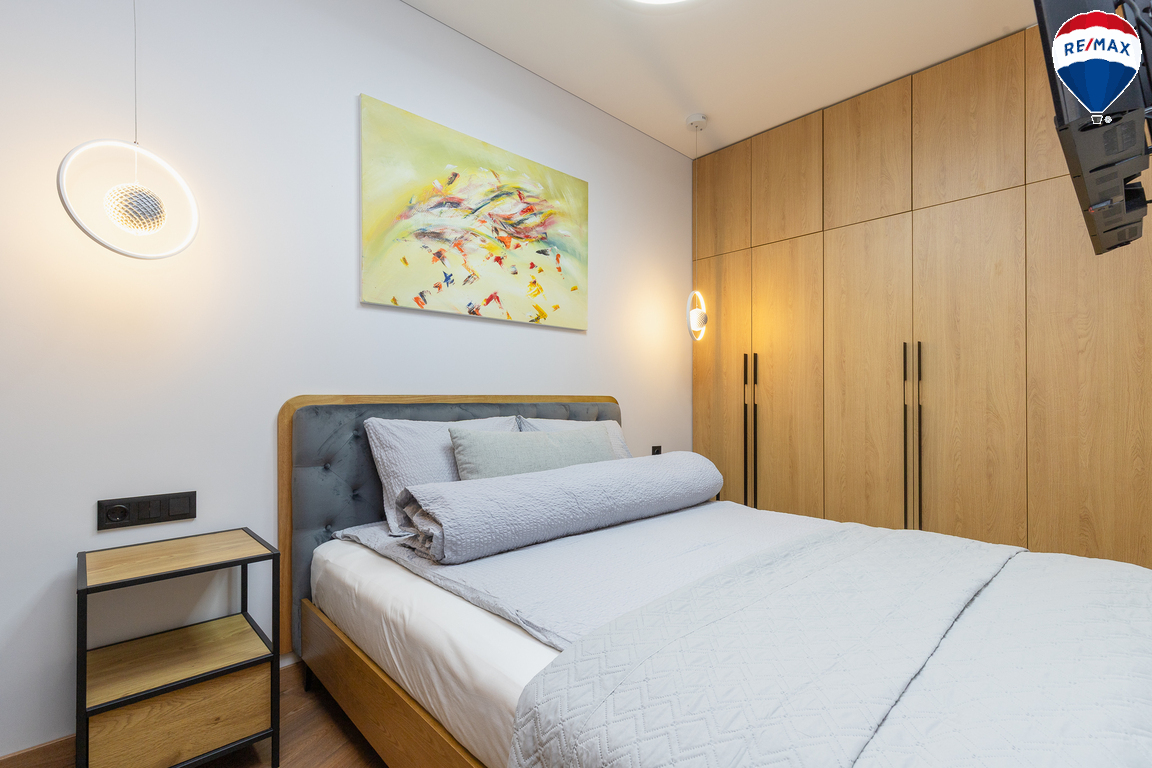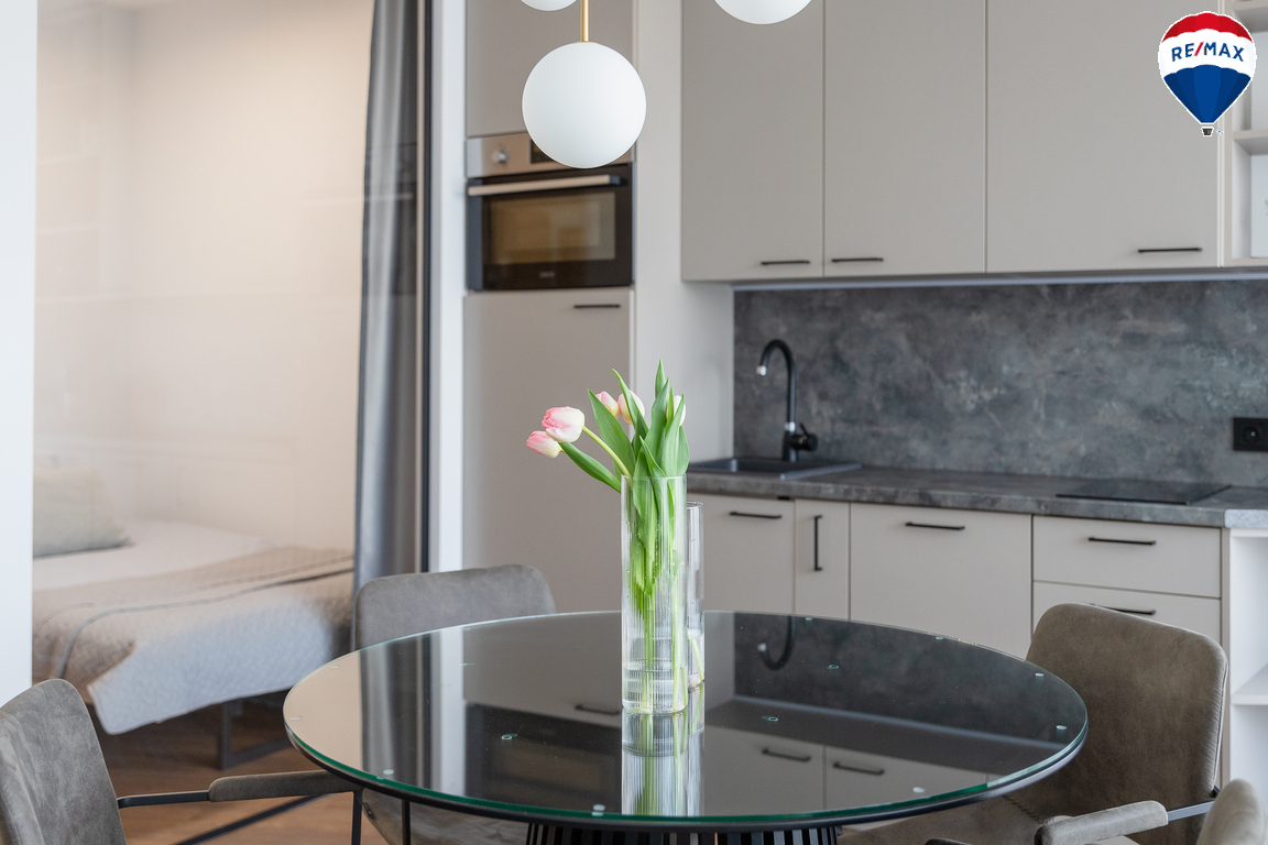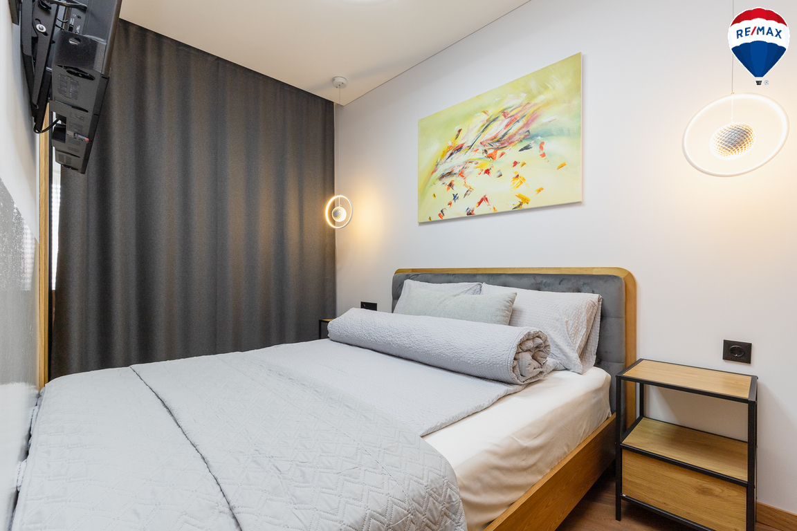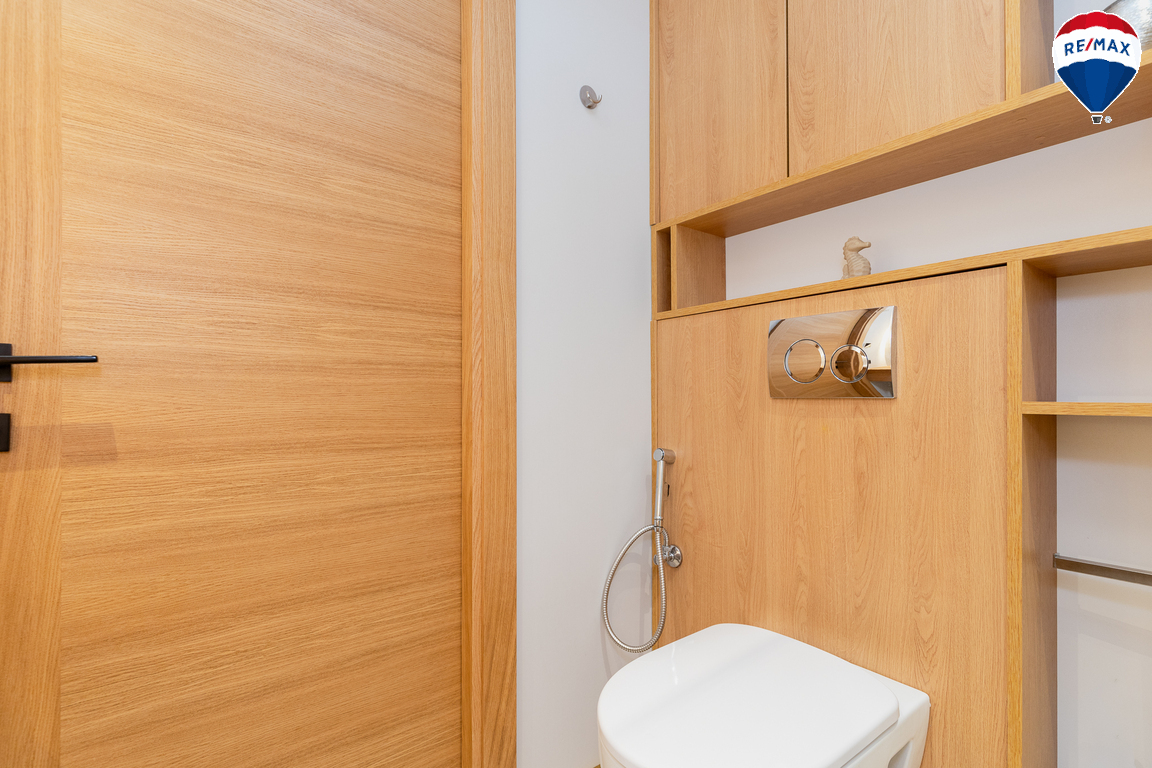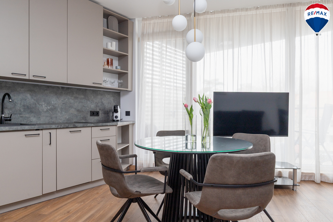 - Butas parduodamas su visais baldais ir buitine technika, didžioji dalis jų gaminta pagal užsakymą – pagalvojus apie jų funkcionalumą;