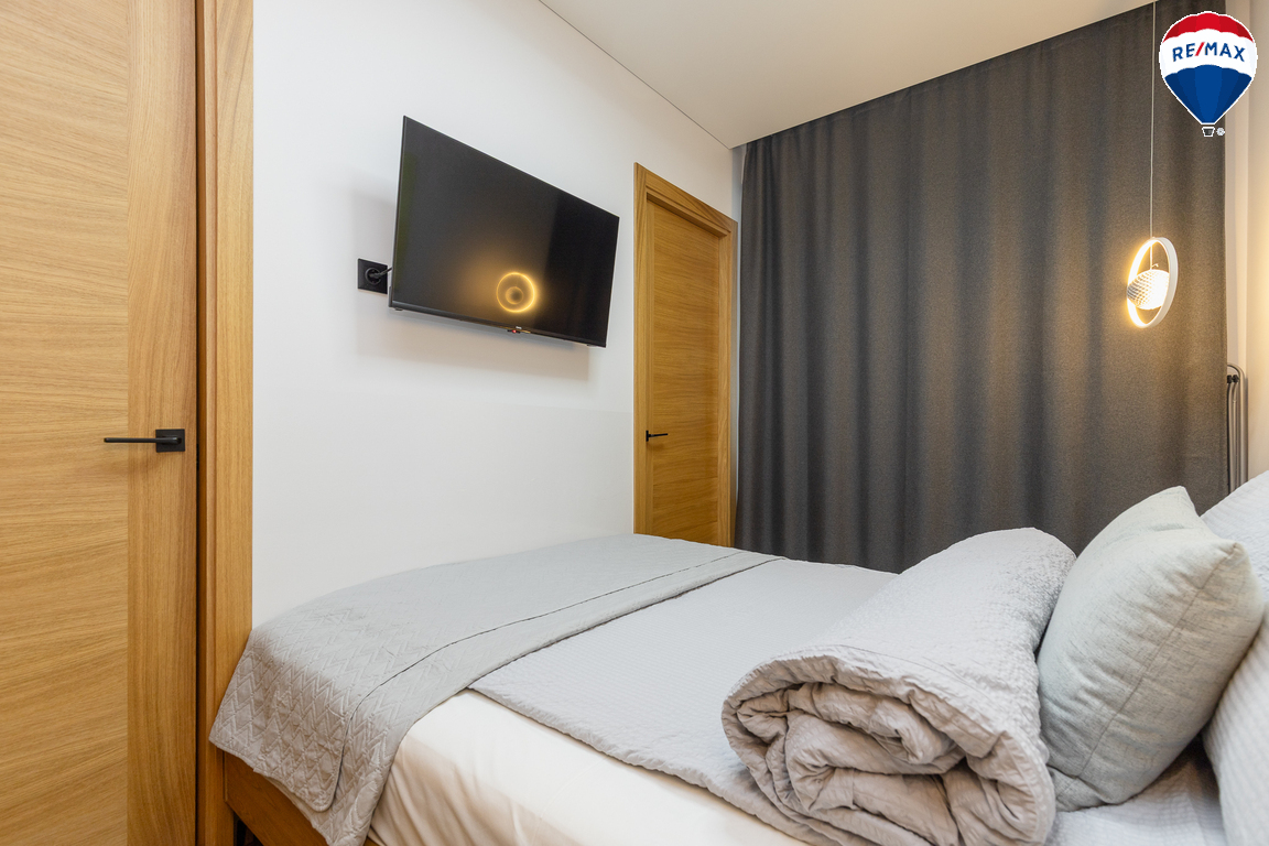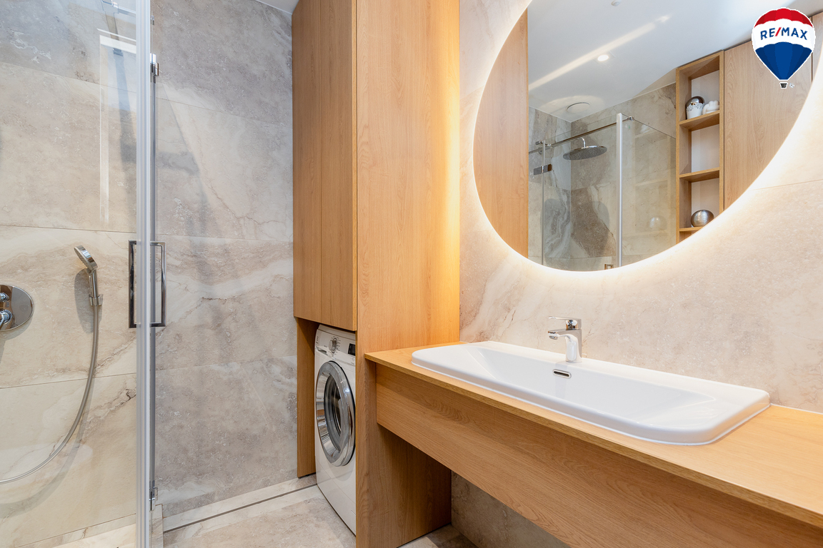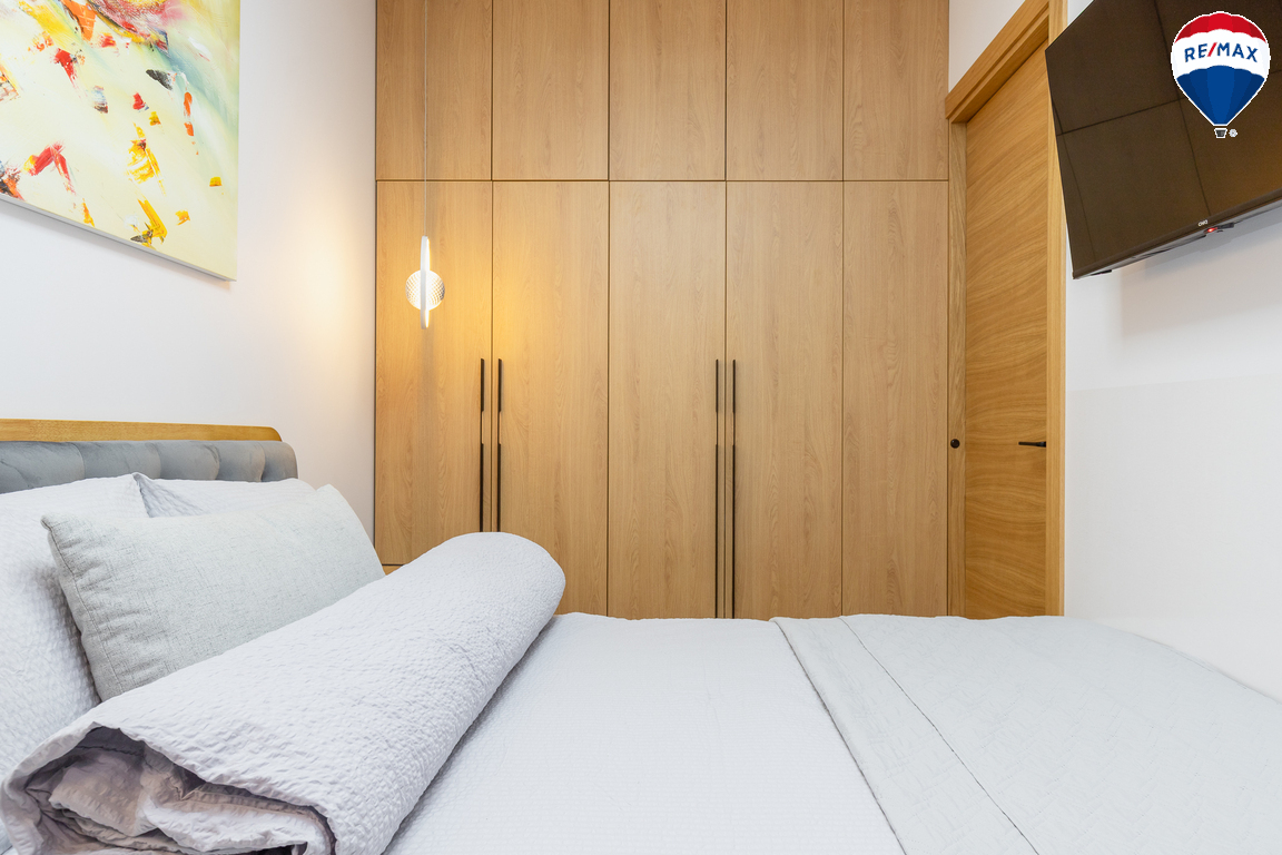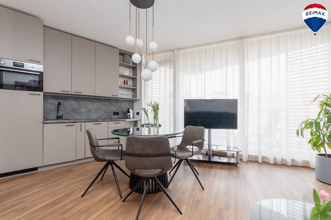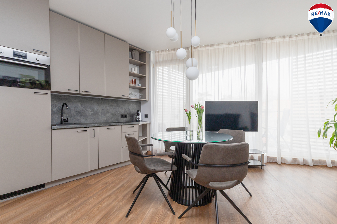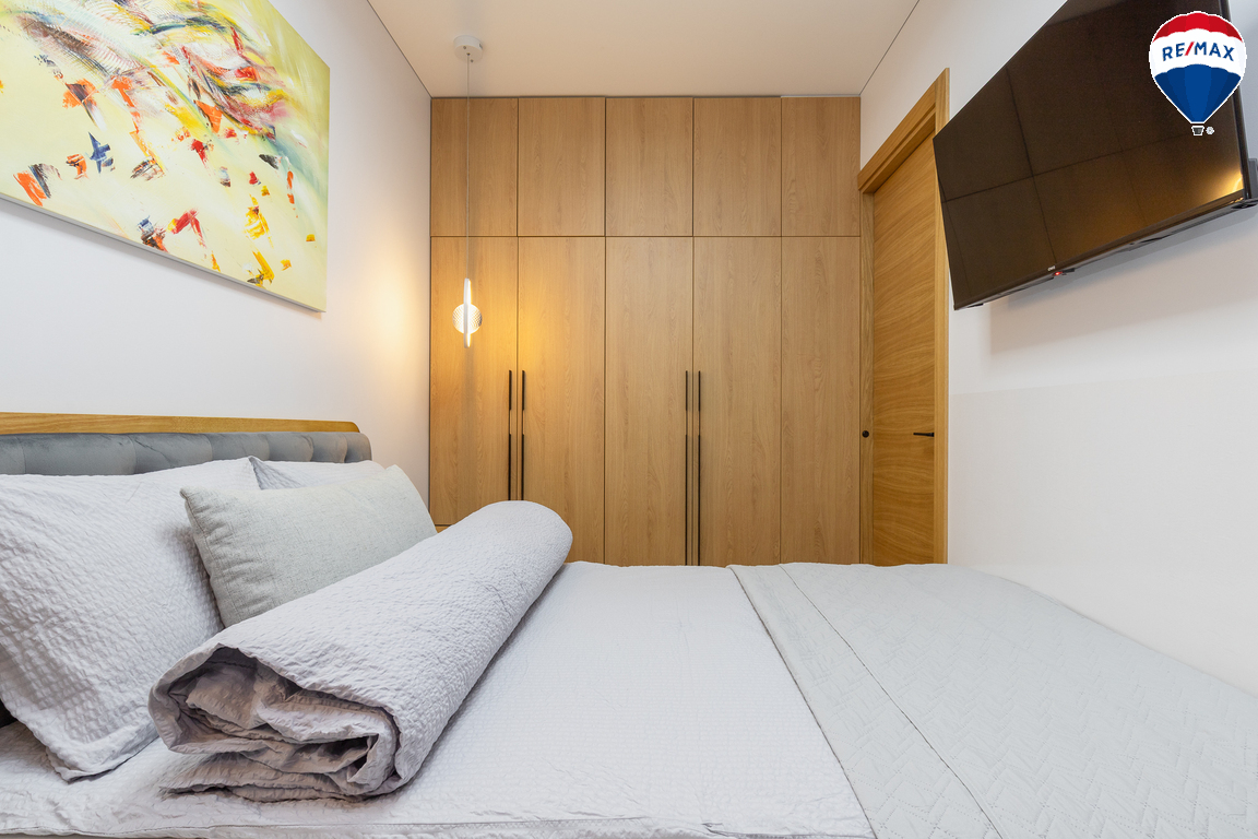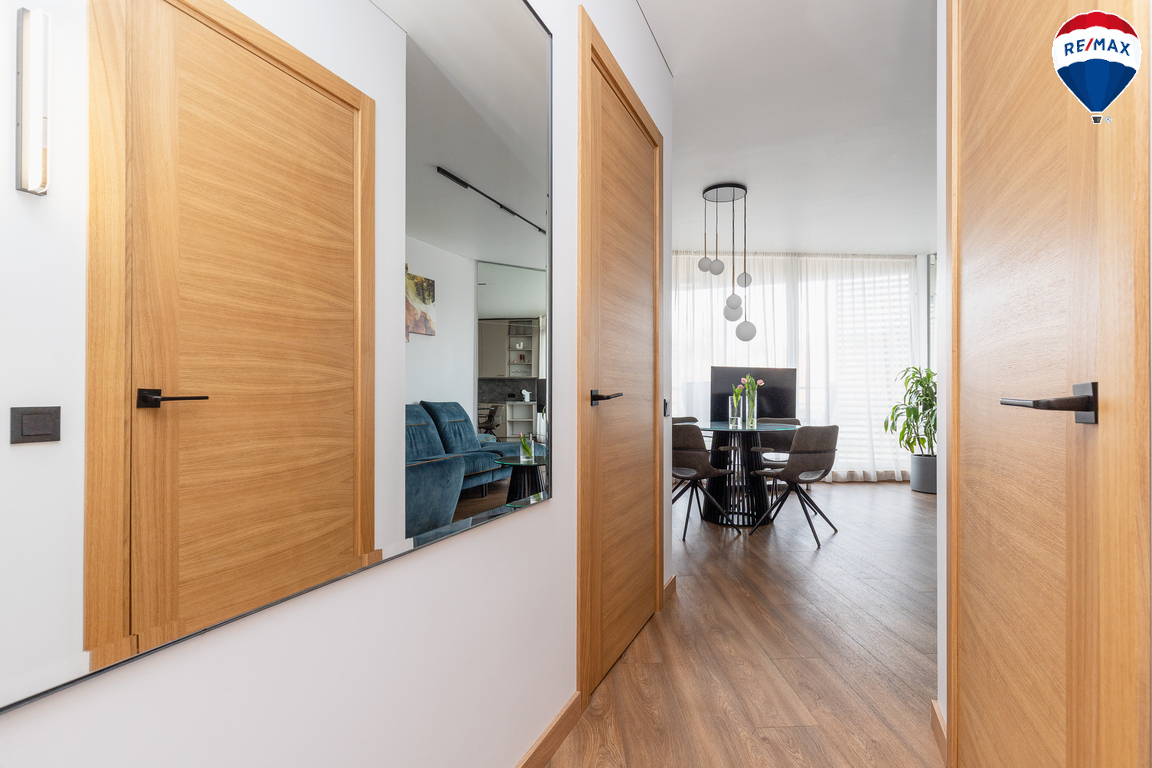 - Butas parduodamas su visais baldais ir buitine technika, didžioji dalis jų gaminta pagal užsakymą – pagalvojus apie jų funkcionalumą;