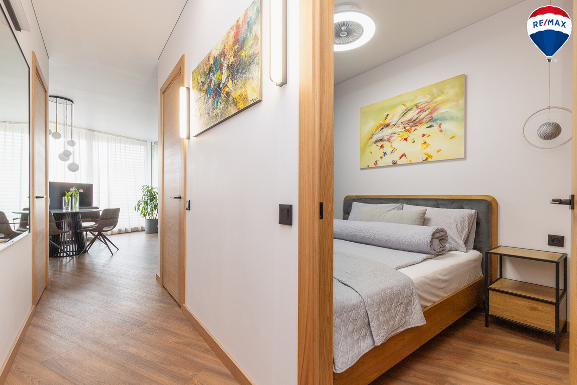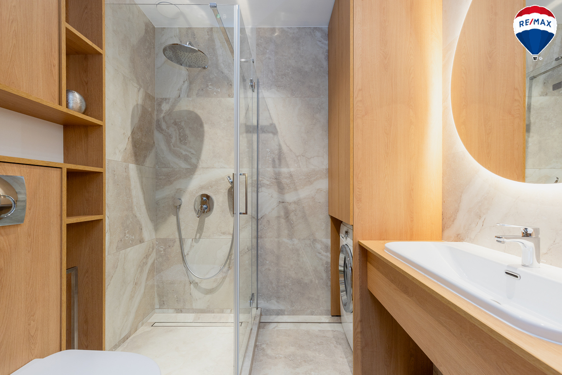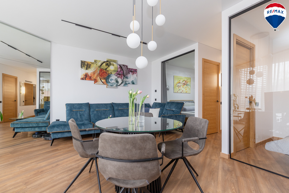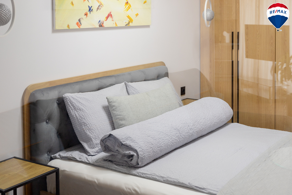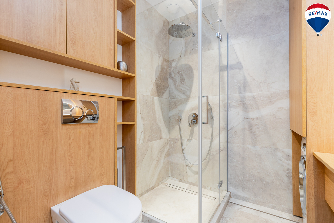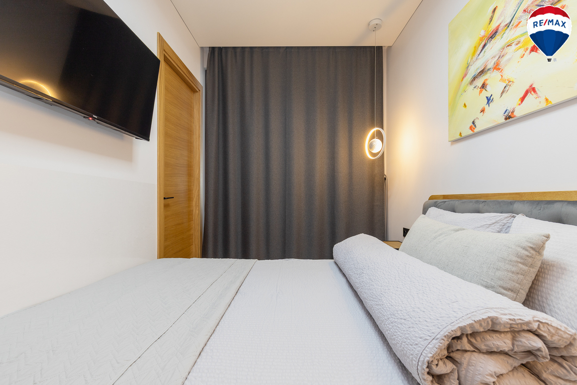 - Butas parduodamas su visais baldais ir buitine technika, didžioji dalis jų gaminta pagal užsakymą – pagalvojus apie jų funkcionalumą;