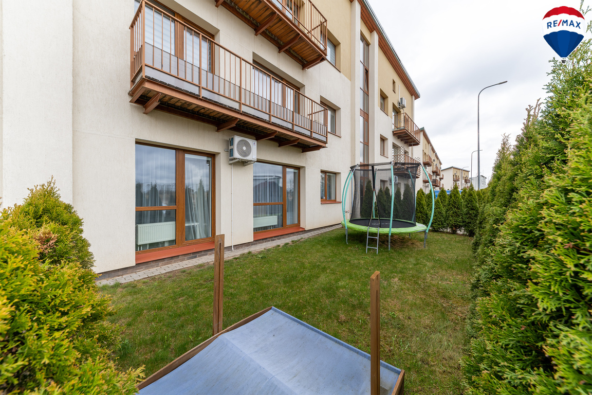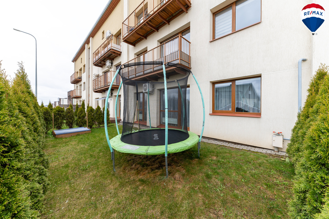 -- Pirmame aukšte – jauki, tujomis atskirta kiemo erdvė, kuri pagal kaimynų susitarimą naudojama šio buto patogumui