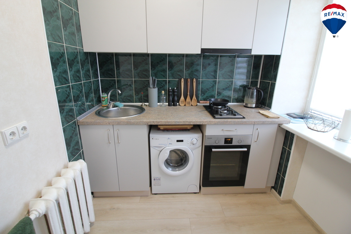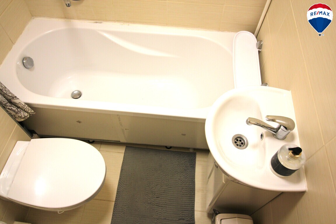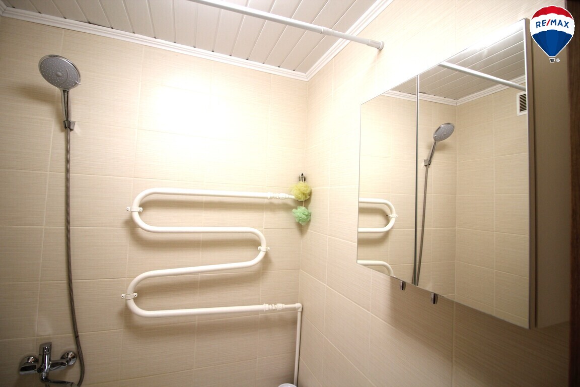 - Patogus vonios kambarys su vonia ir dušu, taip pat skalbimo mašina – viskas, ko reikia paprastam kasdieniam gyvenimui.