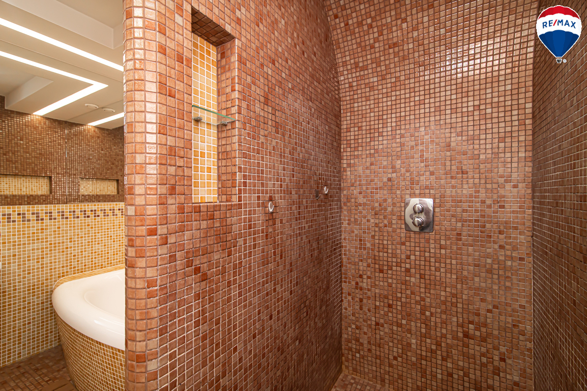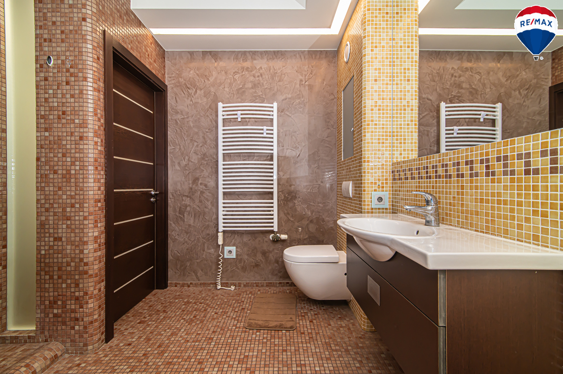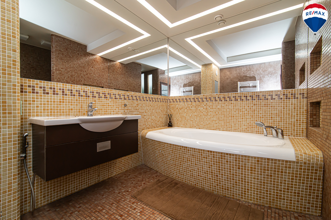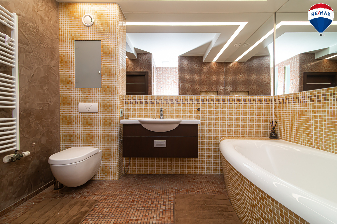 Erdvus - 8 kv. m vonios kambarys su WC, vonia ir dušu;