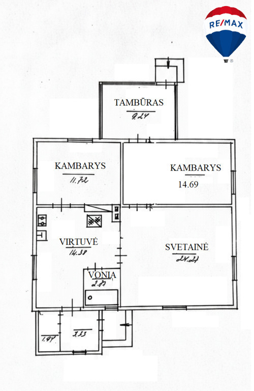 | Kambarių sk. 3 | Statybos metai 1972 m. | Plotas 82.34 m² | Sklypo plotas 21 a |