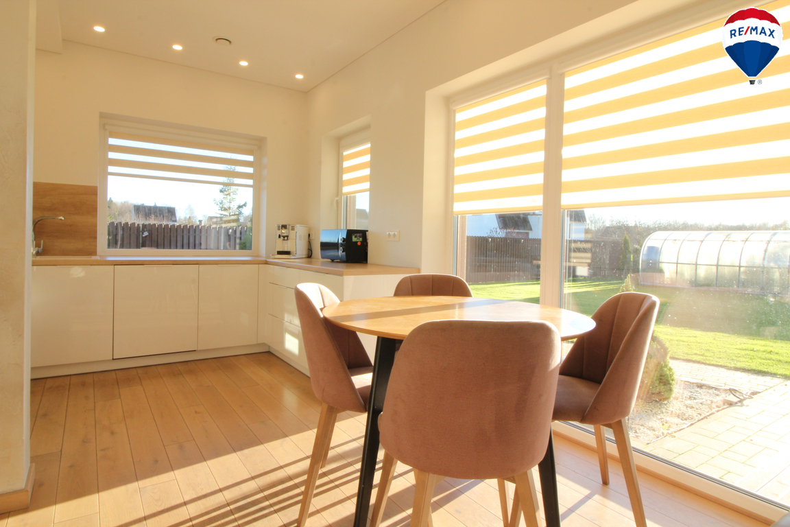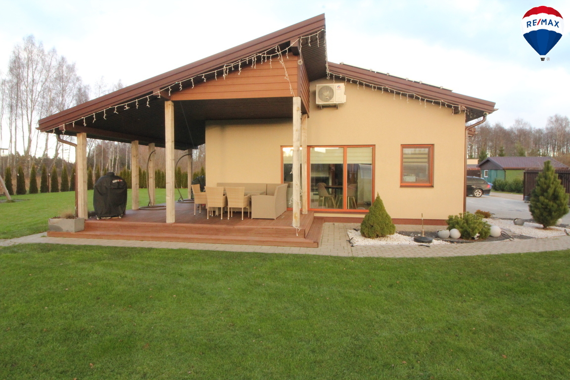 2020 metais pastatytas 4 kambarių namas (79,54 kv. m) pasižymi moderniomis medžiagomis bei apgalvotu išplanavimu. Tvirti akmens mūro pamatai, plastikiniai langai ir B energinio efektyvumo klasė leidžia mėgautis šiluma bei mažesnėmis išlaidomis visus metus. Jūs iškart galėsite įsikelti, nes name įrengta pilna apdaila, funkcionali virtuvė su visais baldais, atviras planas svetainei, jaukus vonios kambarys su dušu bei skalbimo mašina. Įrengta lauko terasa pravers šeimos vakarams ar poilsiui gryname ore.