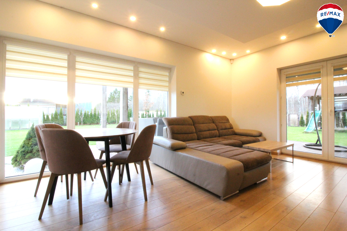 Šis namas aprūpintas elektriniu šildymu, oro kondicionieriumi, 380 V elektros įvadu, vietine kanalizacija ir vandentiekiu – tad gyvenimas čia be jokių rūpesčių. Įdiegta signalizacija užtikrins jūsų turto saugumą tiek kasdien, tiek keliaujant. Papildomai įrengta pirtis leis atsipalaiduoti bet kuriuo metu, o baldai bei buitinė technika leis iškart mėgautis naujų namų komfortu.