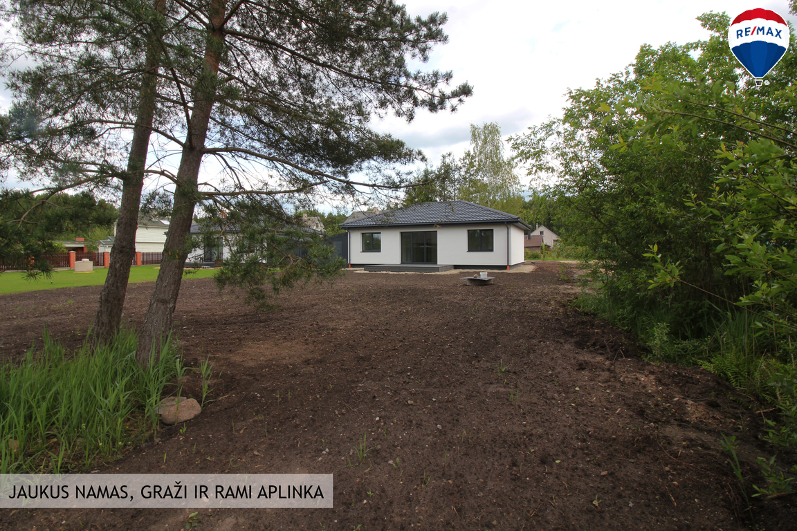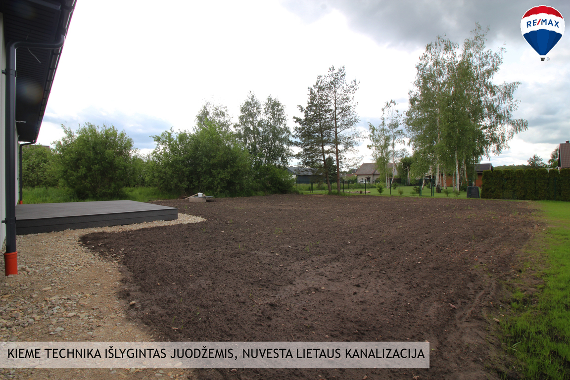 Labai patogus privažiavimas. Padaryta nemažai gerbūvio darbų, išlygintas juodžemis, užvešta skalda, suformuotas patogus bei platus įvažiavimas, sumontuota erdvi terasa su patekimu iš svetainės. Namas itin tvirtas ir saugus pamūrytas iš 20 cm storio blokelių.
