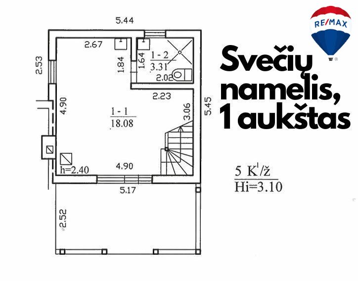 - svetainė, virtuvėlė ir sanitarinis mazgas pirmame aukšte