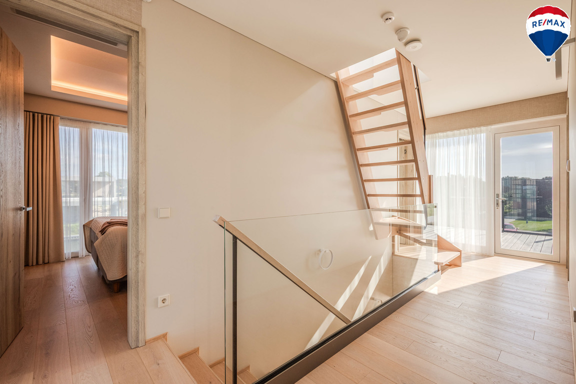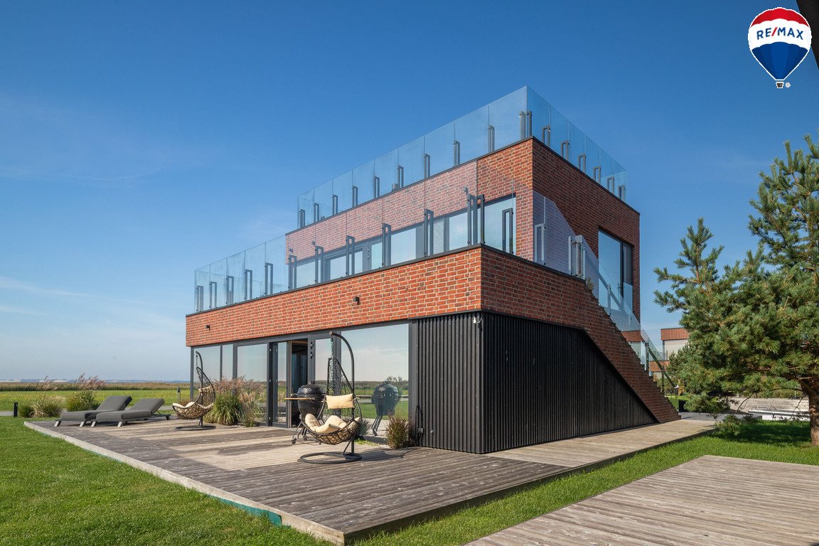 Namas pasižymi modernia architektūra, maksimaliu komfortu ir nepriekaištinga statybos kokybe. Ant stogo įrengta erdvi terasa, iš kurios atsiveria nepakartojami marių horizontai ir Neringos kopų panorama – tai vieta, kur saulėlydžiai atrodo tarsi meno kūriniai.