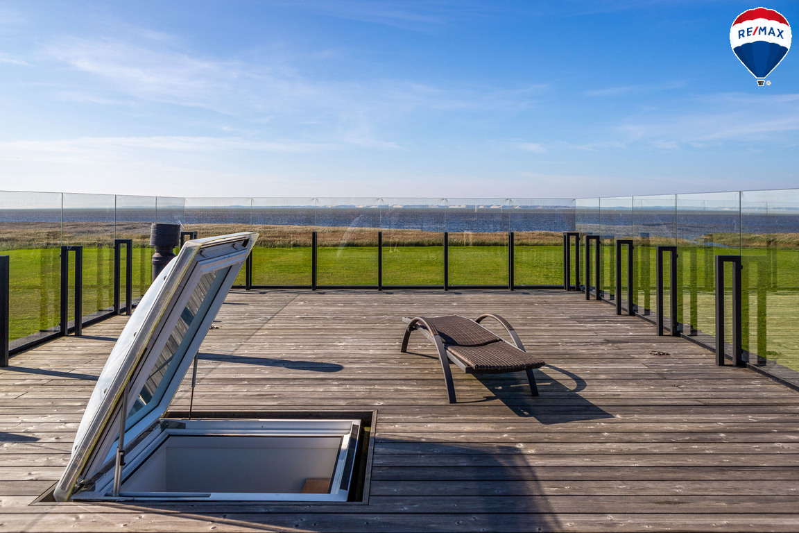 Ant stogo įrengta didžiulė terasa su panoraminiais marių vaizdais.