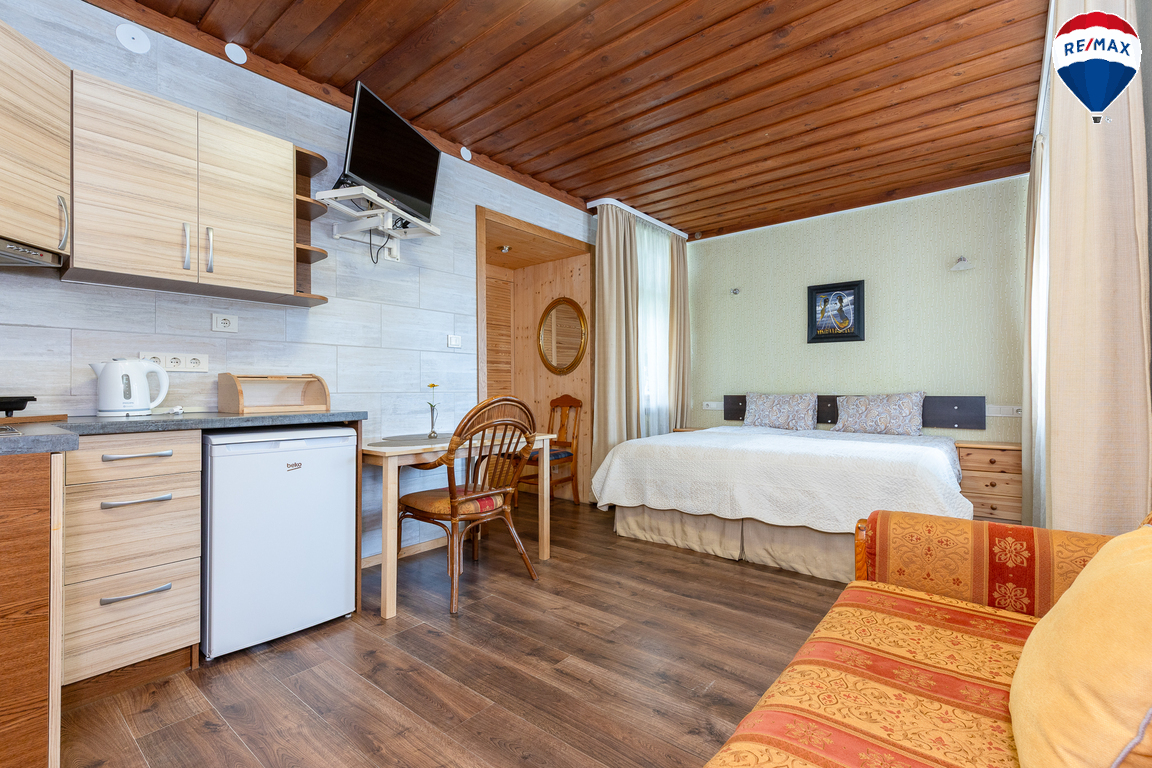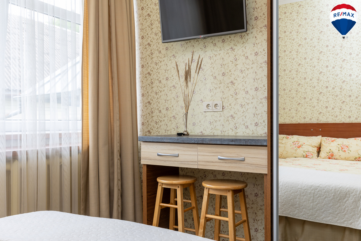 - Pilnai įrengti visi apartamentai, kai kurie apartamentai su mini virtuvėlėmis ir balkonais, kuriuose vienu metu gali apsistoti 30 svečių.