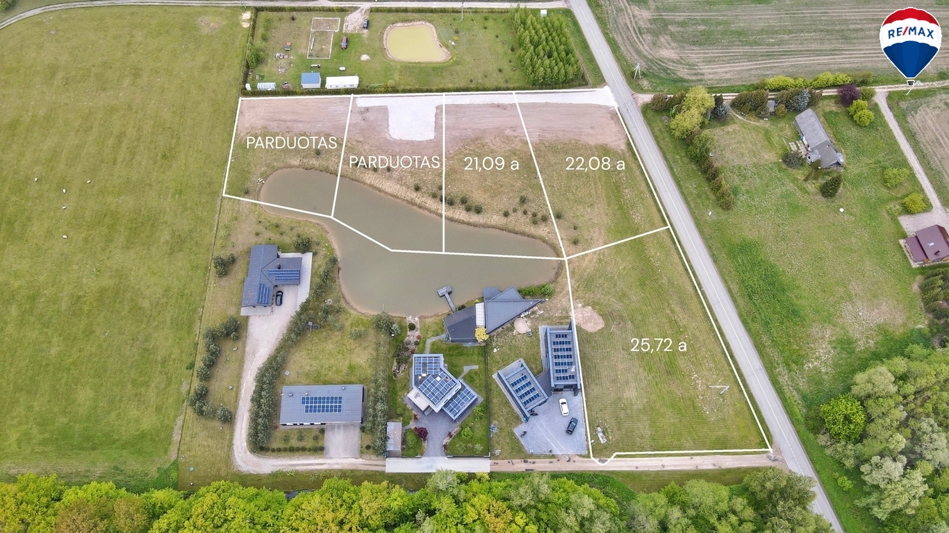 Parduodami apie 20 arų namų valdos sklypai labai geroje vietoje, ramioje vietoje prie miško. Sklypai suformuoti aplink dirbtinį tvenkinį. Tvenkinys yra itin švarus, sklypai yra išlyginti, iškelti ir gruntas jau gerai susigulėjęs. Aplink solidi kaimynystė. Sklypai netoli miesto, geras ir greitas susisiekimas. Kiekvienas parduotas sklypas turės privestas komunikacijas: vandentiekis, kanalizacija. Elektra taip pat yra netoliese, ją teks prisivesti patiems, tačiau elektros tiekėjas kompensuos 50% išlaidų.