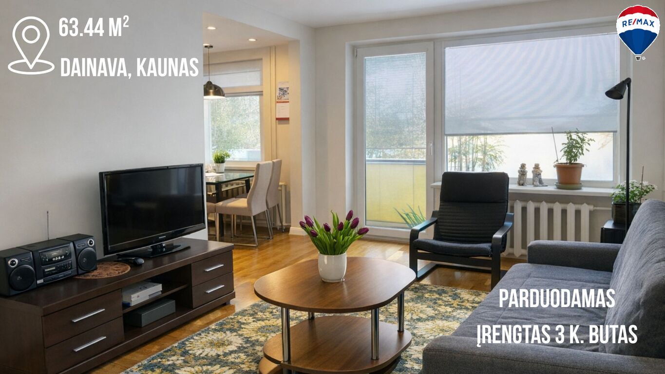 Parduodamas jaukiai įrengtas, erdvus 63,44 kv. m butas Dainavoje. Greitas susisiekimas su Savanorių pr., V. Krėvės pr. ir A1 automagistrale.