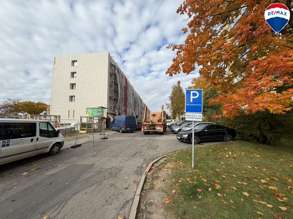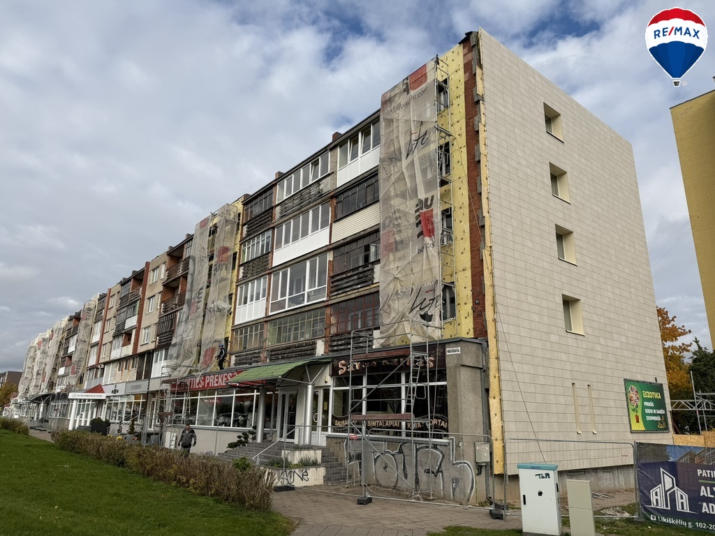 Namas šiuo metu renovuojamas – po renovacijos gyventojai galės džiaugtis mažesnėmis šildymo išlaidomis ir pagerintu pastato estetiniu vaizdu.