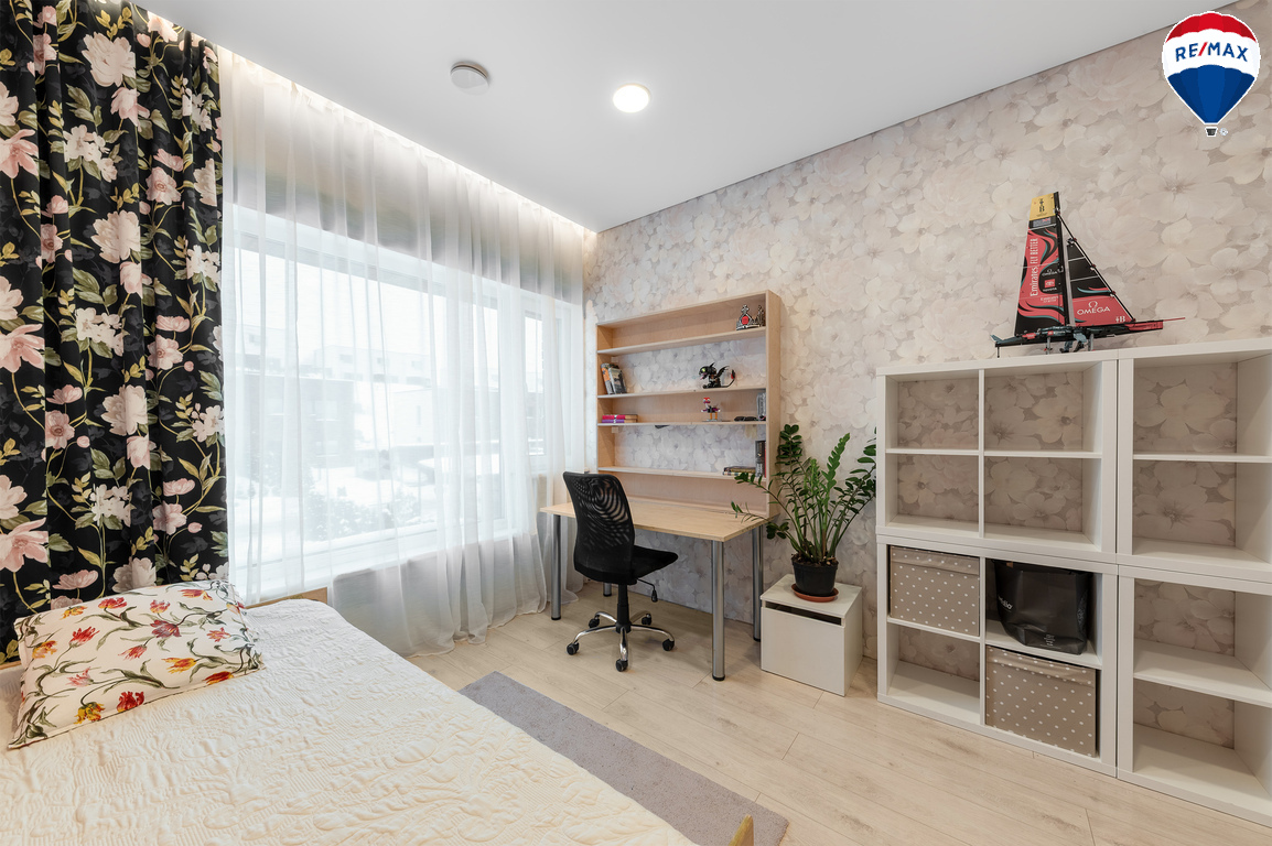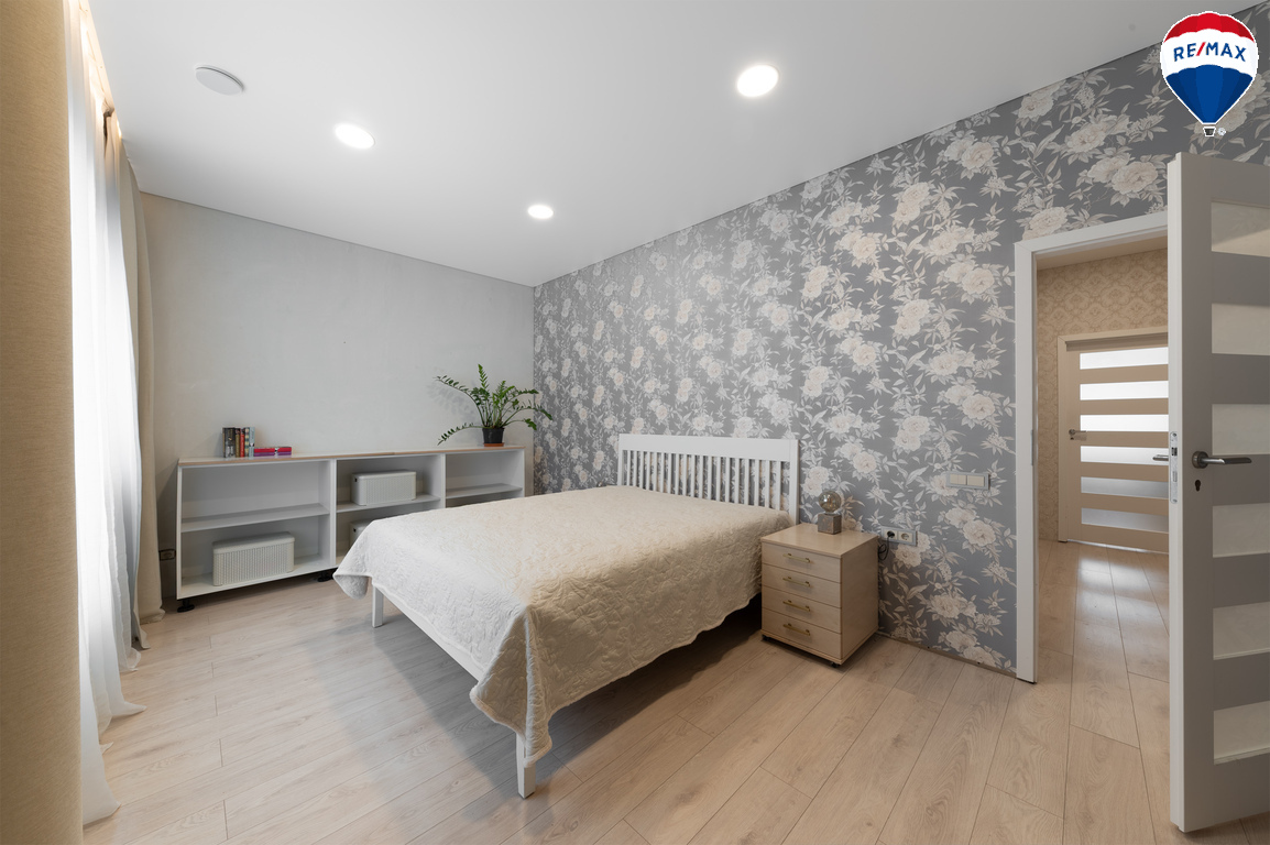 --Aukštos lubos sukuria erdvės pojūtį, kurį dar labiau paryškina panoraminiai langai svetainėje;