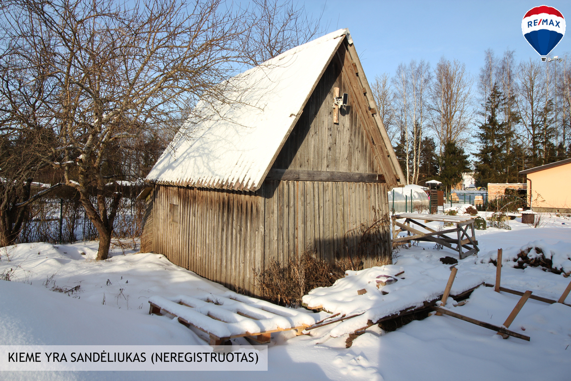 Sklypo plotas – net 6 arai! Tai puikus dydis įvairiems šeimos poreikiams: įsirengti daržą, vaikų žaidimų aikštelę ar poilsio zoną vakarams su šeima ir draugais. Privažiavimas iki namo patogus – galėsite lengvai pasiekti sklypą bet kuriuo metų laiku. Sklype yra ir medinis sandėliukas, jis nėra registruotas, tad galima jį nugriauti ar perkelti į kitą vietą.