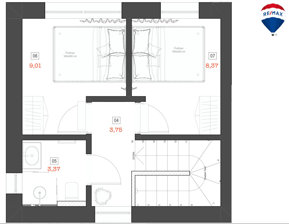• Kambarių skaičius - 3 (apatinėje dalyje – svetainė, viršuje – 2 miegamieji);