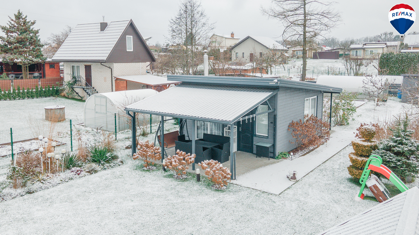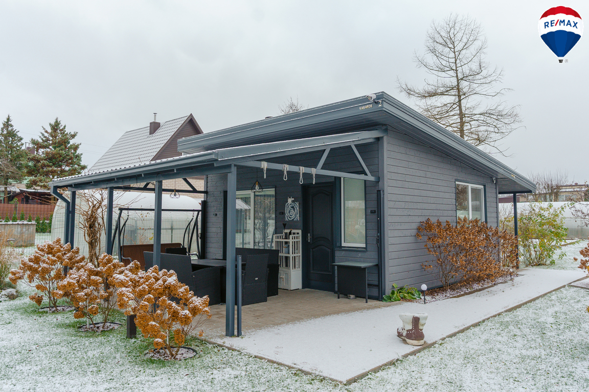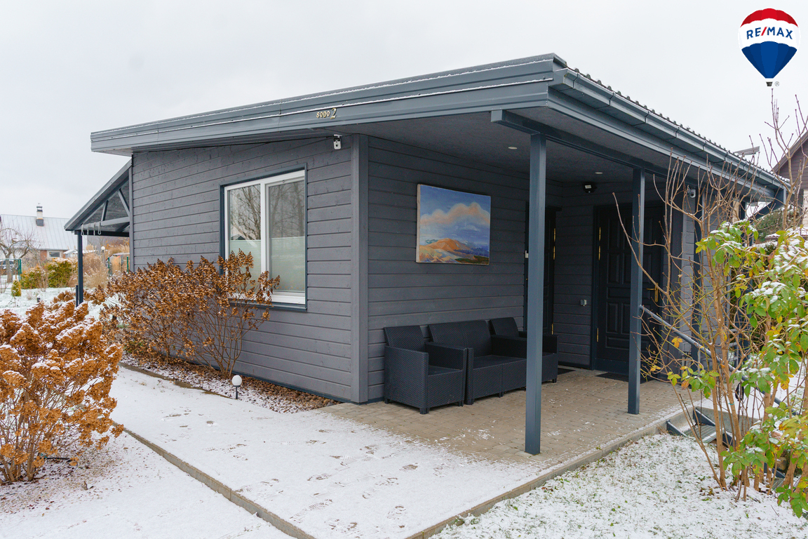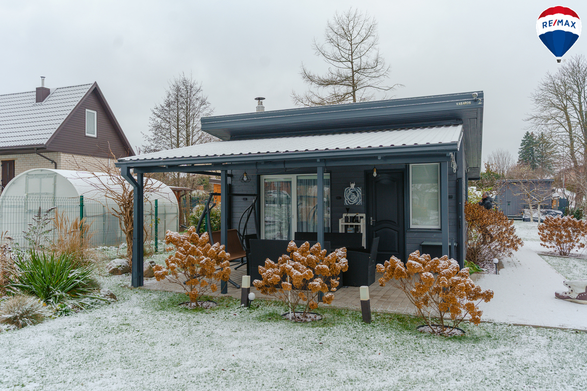 Moderniai įrengtas vieno aukšto sodo namelis